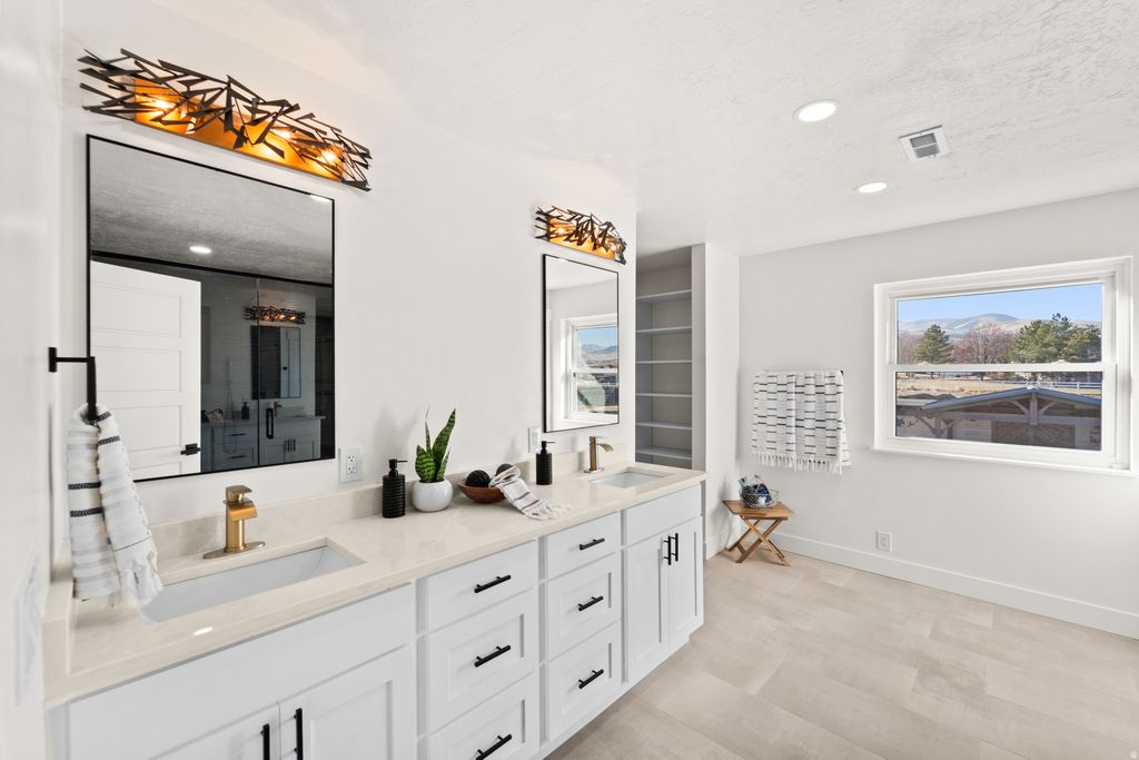 Welcome to an extraordinary modern-farmhouse residence, masterfully reimagined with sweeping views of the Wasatch Mountains. Completely remodeled with uncompromising attention to detail, this home showcases refined craftsmanship, timeless design, and resort-level amenities at every turn. A sweeping wraparound covered front porch sets a gracious tone, offering a front-row seat to peaceful mornings and unforgettable mountain sunsets. Inside, the home unfolds into light-filled living spaces anchored by a striking living room with oversized new windows, creating an atmosphere of warmth, elegance, and effortless comfort. The heart of the home is the chef's kitchen-designed to impress and perform-featuring custom two-tone cabinetry, quartz countertops, a grand statement island, pot filler, double ovens, stainless steel appliances, and abundant storage. Updated LED lighting throughout enhances the home's clean lines and sophisticated finishes. The primary suite is a true private retreat, offering generous space, automatic blinds, and a grand custom bathroom suite complete with glass-enclosed shower doors, upscale finishes, and an expansive walk-in closet designed for luxury living. Outdoors, the property transforms into a private resort. A newly constructed in-ground saltwater pool with cascading waterfall features and multi-level lounging areas creates a stunning focal point, complemented by a chic pool house ideal for entertaining or relaxing. Two covered decks provide ample space for gatherings, while low-maintenance turf grass, an in-ground trampoline, and a private basketball court with custom lighting elevate both form and function. Zoned for horses, this property offers a rare opportunity to blend refined living with equestrian potential, adding versatility and long-term value to an already exceptional setting. For the collector, entrepreneur, or enthusiast, the impressive 15-car heated and air-conditioned garage and shop is unparalleled, featuring massive automatic doors and expansive concrete space ideal for oversized vehicles, business use, or luxury storage. Additional RV parking adds further versatility. This is more than a home-it is a lifestyle property where modern sophistication meets refined rural charm. Every element has been thoughtfully curated to offer privacy, luxury, and enduring value in a setting that is as functional as it is breathtaking. Square footage figures are provided as a courtesy estimate only and were obtained from county record. Buyer is advised to obtain an independent measurement.