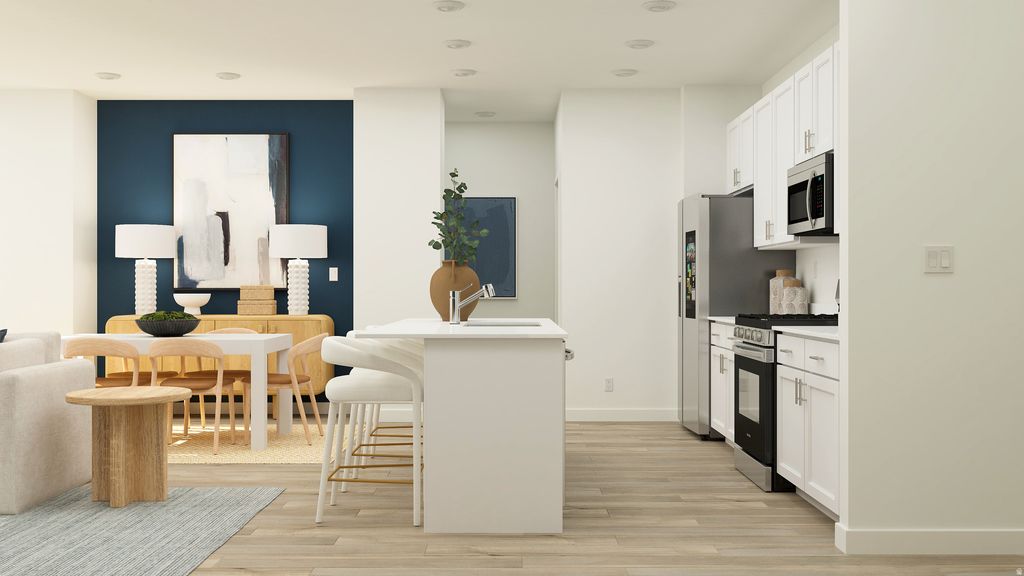 The Valley at Wildflower - 1484 - Res M. Ask about or lower interest rates when financing with our preferred lender. Estimated completion in March. This home offers 3 bedrooms, 2.5 bathrooms, an attached 2-car garage and a full unfinished basement. On the main floor, a spacious kitchen offers white craftsman-style cabinets, quartz countertops, and stainless steel appliances including the refrigerator! Upstairs is the owner's suite with owner's suite bathroom, laundry area, two additional bedrooms, and a full secondary bathroom. Square footage figures are provided as a courtesy estimate only and were obtained from builder. Buyer is advised to obtain an independent measurement. Interior photos are of same style of home, but not the actual home. Rendering is for illustrative purposes only.