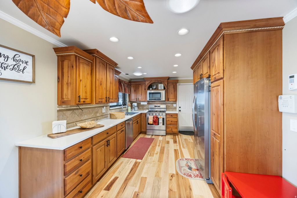 This beautifully updated rambler, tucked away in a quiet cul-de-sac, offers two remodeled kitchens and laundry hookups on each level-ideal for multi-generational living or rental income. The main level features a stunning kitchen with a brand-new gas range, dishwasher, refrigerator, quartz countertops, new sink and disposal, along with new hickory hardwood flooring throughout. Just off the kitchen is a large two-car garage, and the main level is completed by a dining room, two bedrooms, and two full bathrooms. Brand-new fireplace inserts on both levels provide warm radiant heat with remote controls. The basement offers a spacious, living room with a brand-new mounted TV, new ceiling tiles, a newly added kitchen with new cabinets, quartz countertops, and new LVP flooring, plus two sizable bedrooms and a large full bathroom. Enjoy a fully fenced, private backyard featuring a large gate and concrete pad for extra parking, mature shade trees, a fire pit, and a covered patio. Ideally located between I-215 and Bangerter Highway, just 15 minutes to the airport, 5 minutes to TRAX, and less than a mile from the new Taylorsville Temple. This is an opportunity you won't want to miss! Offers will be accepted after the open house on Sunday, December 28th.