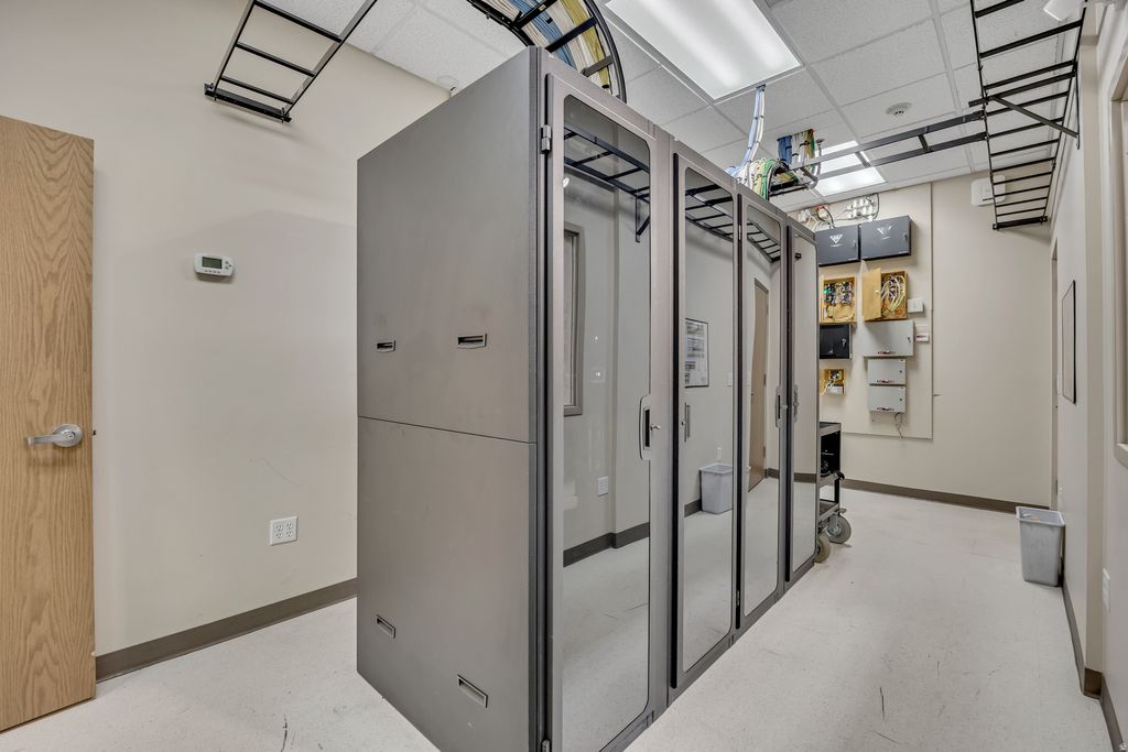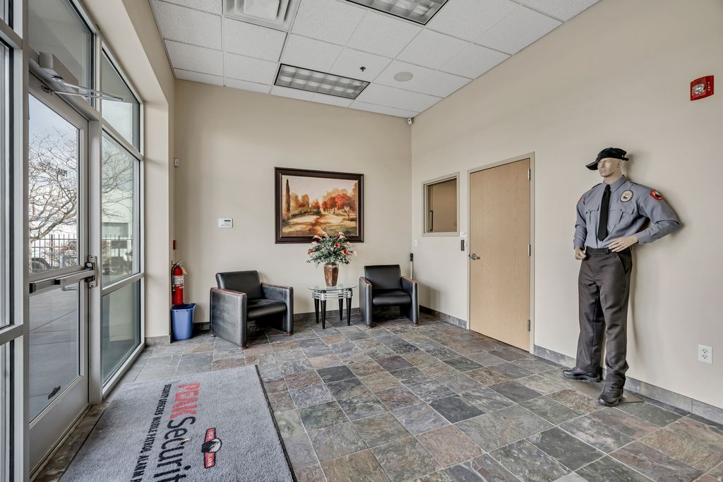 Terrific lease opportunity for office or office and warehouse. Lease a section or the entire space. Secure location with property fully fenced and gated. Full alarm system and key card access. Multiple conference rooms, instruction or classroom, large kitchen and laundry area. Full server room, movie theater and two reception areas.