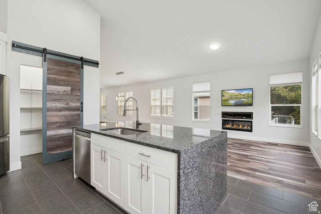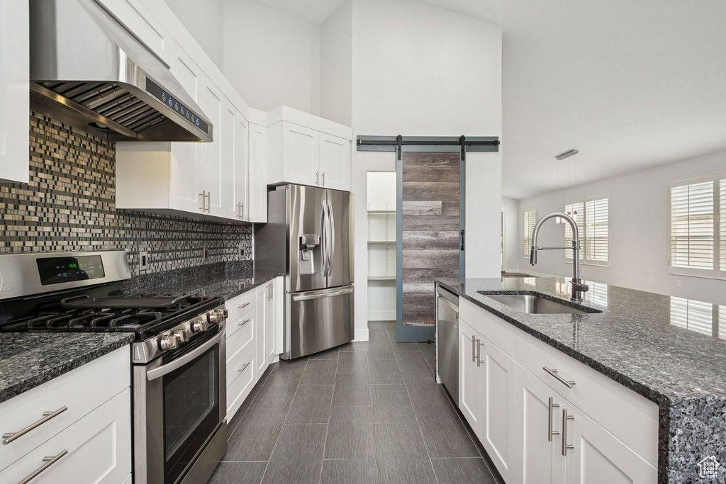 Enjoy coming home to this fully remodeled 4-bedroom, 3-bathroom home located in the gated community of Renaissance at Trimble Creek. The neighborhood sits along the Jordan River with an excellent public golf course, River Oaks, at the base of the street. The home offers quick access to I-15, Salt Lake City's main artery. Home Depot, Smith's Supermarket, and a host of shops and restaurants are located just minutes away on 9000s and Redwood Road. The home was re-imagined in 2020 as an open concept, with a larger kitchen, custom white European-style cabinets, stainless steel Wi-Fi-ready LG appliances, Nest Home Thermostat, electronic doorbell, luxury granite countertops, a walk-in pantry with a vintage reclaimed wood barn door, matching LVP flooring, and an LED fireplace. Super premium 80oz plush carpet was installed in the master bedroom and basement, making for a very comfortable living experience. Vaulted ceilings, wonderful open great room, spacious bedrooms, main floor laundry room, main floor office/4th bedroom, and floor-to-ceiling windows throughout offering excellent privacy and quiet at night. Enjoy the hidden main floor master suite with a newly finished master bathroom, dual floating vanities, a Walk-in closet, and a large euro glass shower. The large Basement offers a wonderful open family room with a walk-out basement. One bedroom with backyard access, 1 full bathroom, potential build-out for another bedroom or shop space, and lots of storage. This gorgeous garden-like home is set next to Trimble Creek and has a private deck with spectacular views of the Wasatch Mountains, with Snowbird ski area and Mount Timpanogos visible. A lower back patio, large 2-car garage with a newly painted floor, and a beautifully manicured yard make this a turnkey, move-in-ready home. Centrally located to schools, shopping, and freeway access. A must-see!