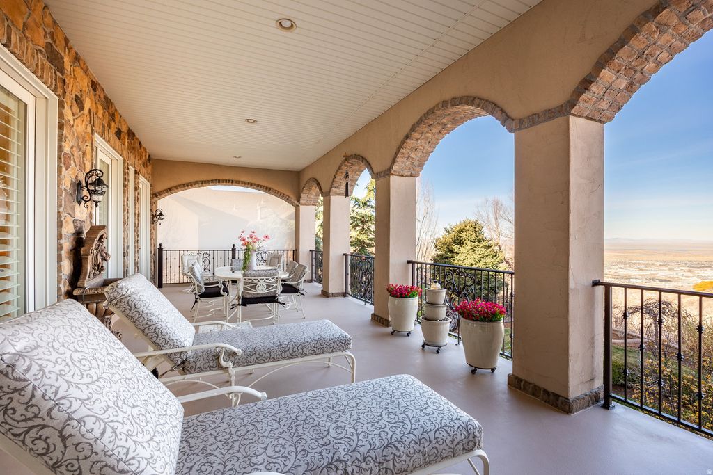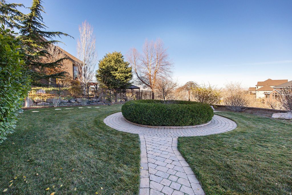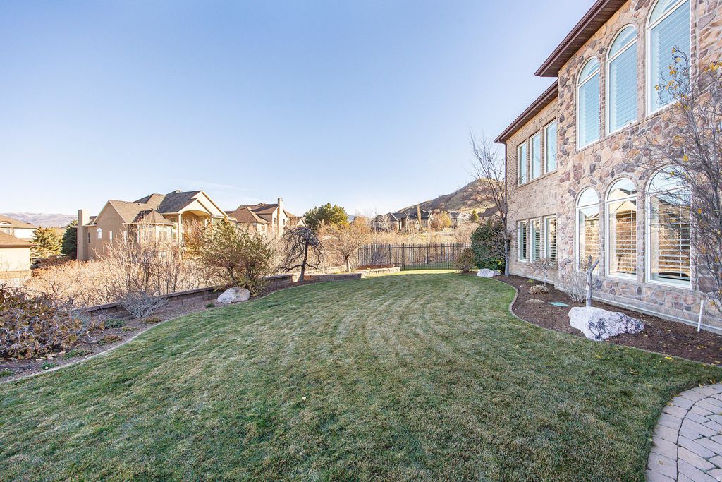 Eaglepointe Estates in North Salt Lake offers an ideal mix of suburban comfort and urban accessibility. Its well-crafted homes and nearby parks create a lively environment that encourages community engagement and plenty of outdoor recreation. Beautifully maintained custom home with a highly functional floor plan. The main level includes a master suite, guest room, den, laundry room, dining room, kitchen with breakfast area, and a spacious great room. Enjoy a private sanctuary patio conveniently accessible from both the master suite and kitchen. The lower level offers a theater room, fitness room, three additional bedrooms, a second kitchen, and another great room. Ample storage is found throughout, along with a heated three-car garage featuring a dedicated workspace.