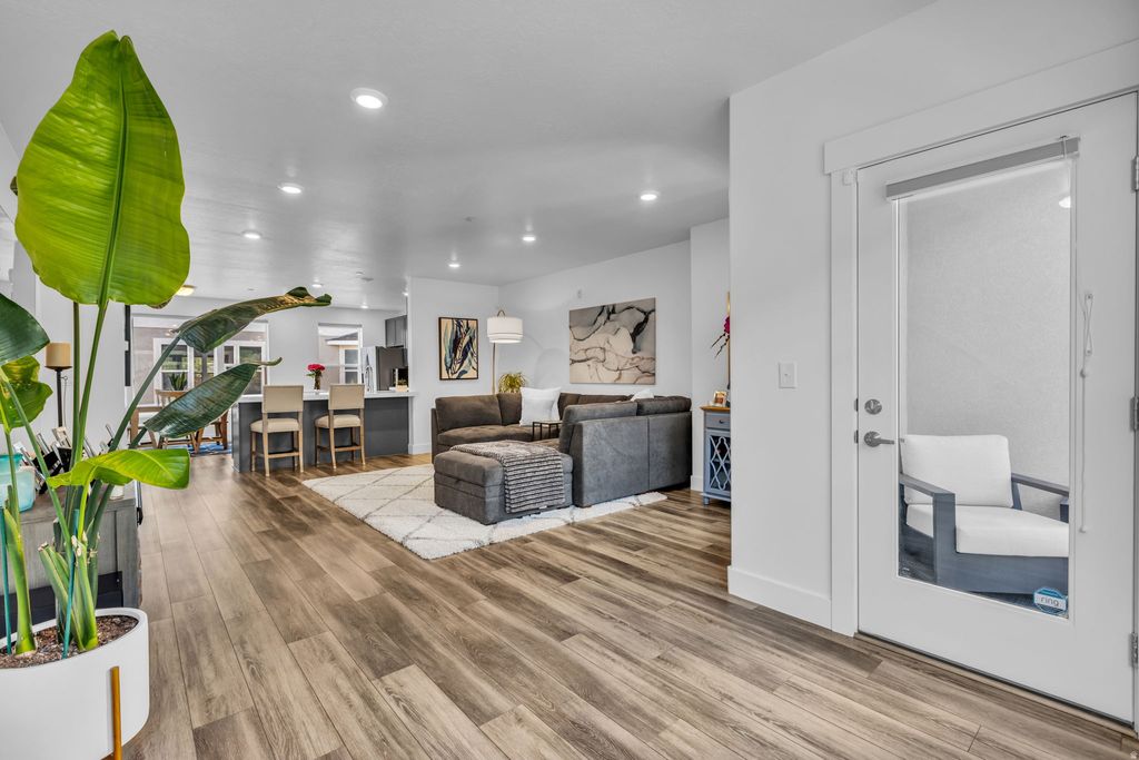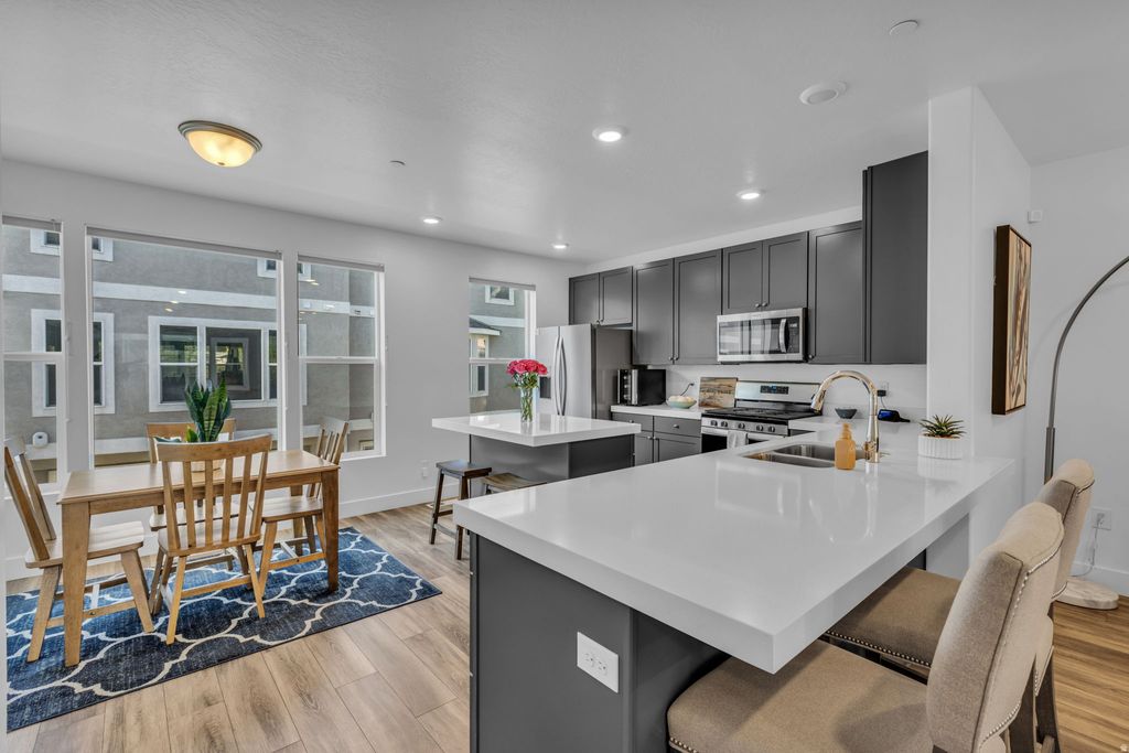 Motivated Seller, willing to contribute to closing costs or rate buy down! Why wait for new construction when this beautifully maintained townhome is ready for you now? Built in 2020 by Hamlet Homes, this home offers a spacious, open floor plan with a huge primary suite featuring a private ensuite bath. The kitchen shines with stainless steel appliances, a gas range and quartz countertops - perfect for cooking and entertaining. Enjoy brand new carpet throughout, plus an oversized garage equipped with 220-amp power for an EV charging station. The community features a fenced dog park and is ideally located near Bangerter Highway, I-215, shopping, dining, and more. The well-kept grounds at Muirhouse Townhomes offer a clean, quiet setting that's hard to beat. Square footage figures are provided as a courtesy estimate only and were obtained from county record. Buyer is advised to obtain an independent measurement.