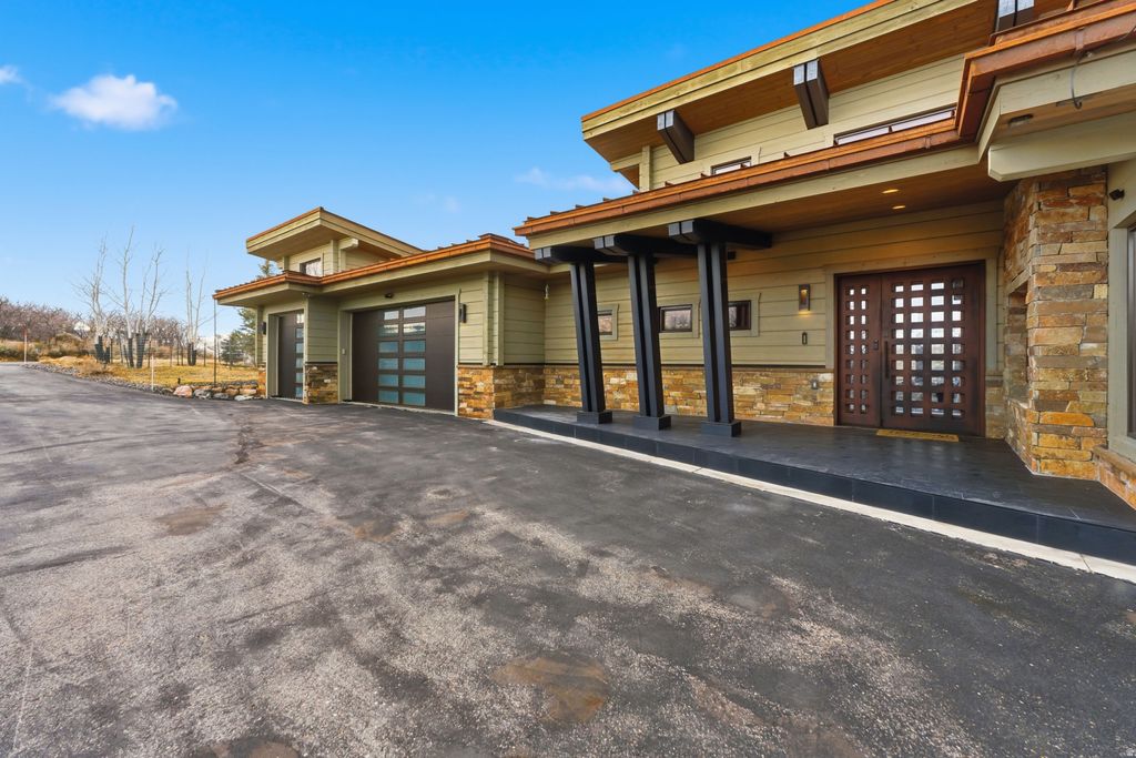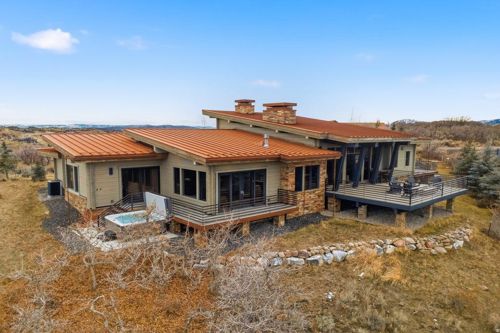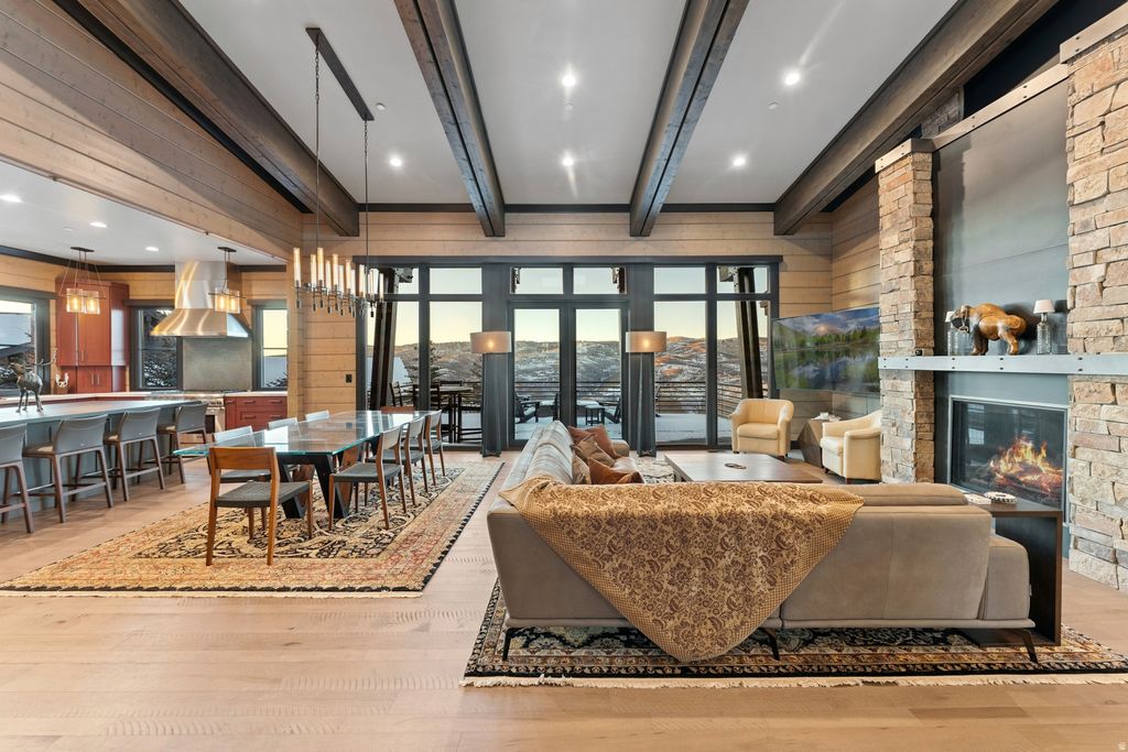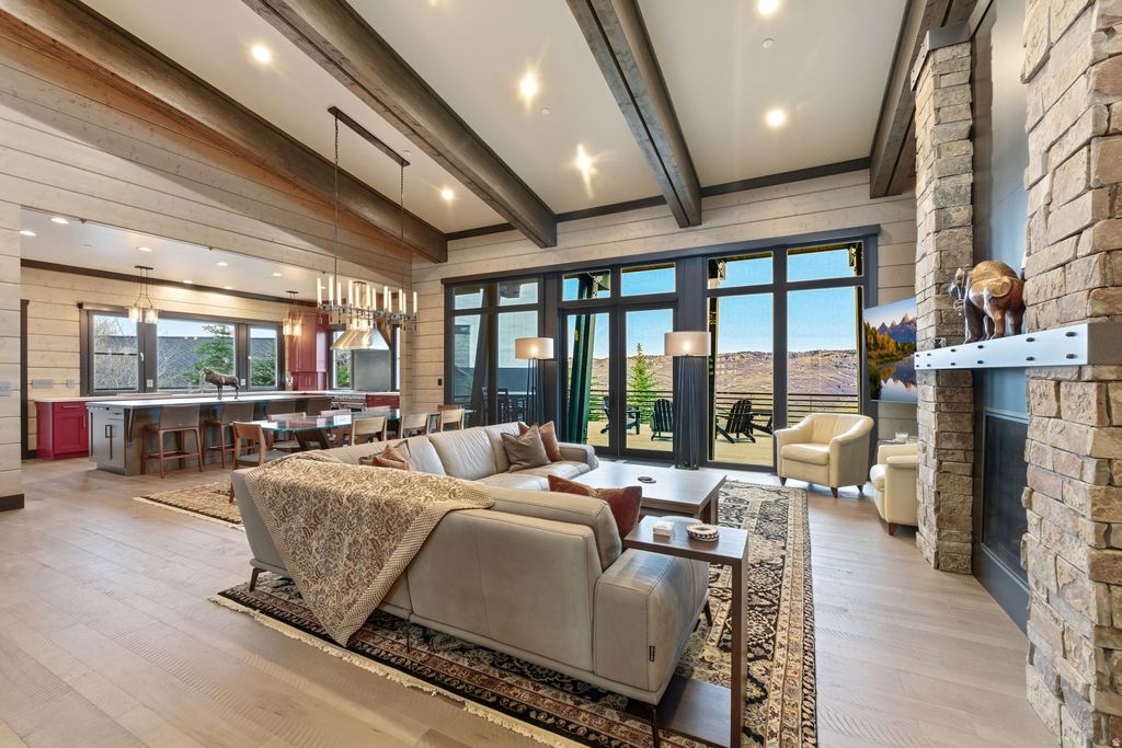 Modern Mountain Living with Expansive Views -- A refined modern mountain retreat offering the rare ease of single-level living, exceptional craftsmanship, and thoughtful high-end upgrades throughout. Positioned on a ridgeline, this light-filled home enjoys remarkable privacy, expansive sunrise and sunset views, and seamless indoor-outdoor living. The open layout is anchored by dramatic exposed wood beams, soaring ceilings, and oversized European windows that flood the home with natural light and frame wildlife and seasonal ski runs. The main living area features a striking stone fireplace and gourmet kitchen, complete with a 30-bottle wine cooler and premium finishes. A private den and a spacious game room-currently configured as a pool table room. Outdoor living is a standout feature. A recently installed 400-square-foot deck off the living room was designed to maximize views and gathering space including a high-end concrete gas fire pit. The front outdoor deck has been recently redone with new slate, enhancing both curb appeal and functionality. This custom log home was built by Scandinavian Builders using wood imported from Finland, offering an equivalent R-35 insulation value for comfort and efficiency. High-end lighting, heated roof heat tape, and quality finishes reflect the attention to detail at every turn. The heated garage is exceptionally well-appointed, featuring two large floor drains, a sink, a hose bib, and a generous space. A convenient entry from the garage leads into a dedicated mudroom, providing easy storage for gear, coats, and seasonal equipment. Additional highlights include: Heated garage with premium utility features Multiple fireplaces in the living room, game room, and primary bedroom Light and bright interior with minimal steps for easy living Plans for an addition of an en-suite bedroom available upon request Easy access to community biking trails. A rare combination of privacy, craftsmanship, comfort, and lifestyle-this home is mountain living at its finest.