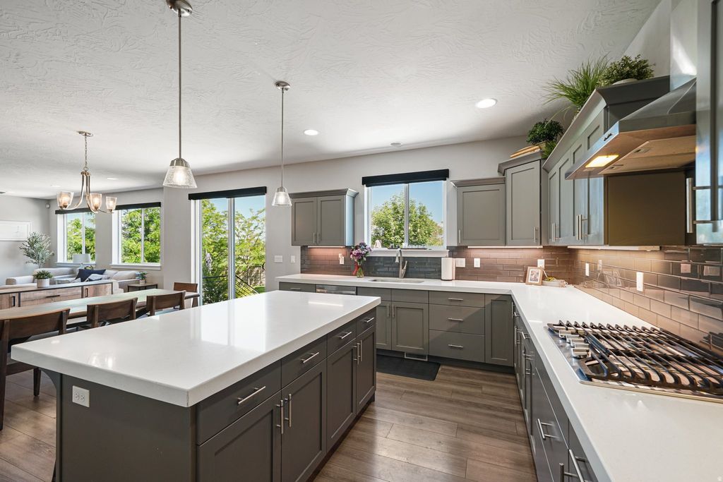 One of the Best Lots in Vineyard! This stunning seven-bedroom home with a main-floor office is located in the highly sought-after Parkside at Waters Edge neighborhood. Sitting on a spacious .34-acre lot, the property backs directly onto a park and includes two gated access points to walking trails, a waterpark, and open green spaces. Enjoy unobstructed views of Mount Timpanogos and the Wasatch Mountains, with preserved open space behind the home for added privacy and serenity. The home is loaded with upgrades, extras, and amenities. Features include a finished garage (textured, painted, and with epoxy floors) and a drive-through single-car garage that leads to the backyard. You'll find ample storage throughout, including two finished storage rooms and additional finished storage beneath the front porch. HOA amenities include access to two clubhouses, swimming pools, hot tubs, and fitness centers with modern equipment. A well-connected network of hiking and biking trails links the park, community, Utah Lake, local schools, and public transportation-accessible directly from your backyard. Interior highlights: 9-foot ceilings on both the main floor and in the basement Plantation shutters in the front and motorized up/down blinds in the back to optimize the views Included: hot tub, gas patio fireplace, in-ground trampoline, gas grill, and double washers and dryers. This is a rare opportunity-you won't find a better yard or location in Vineyard. Please refer to the virtual tours for a full walkthrough. Buyer to verify all information. Details are provided for marketing purposes only.