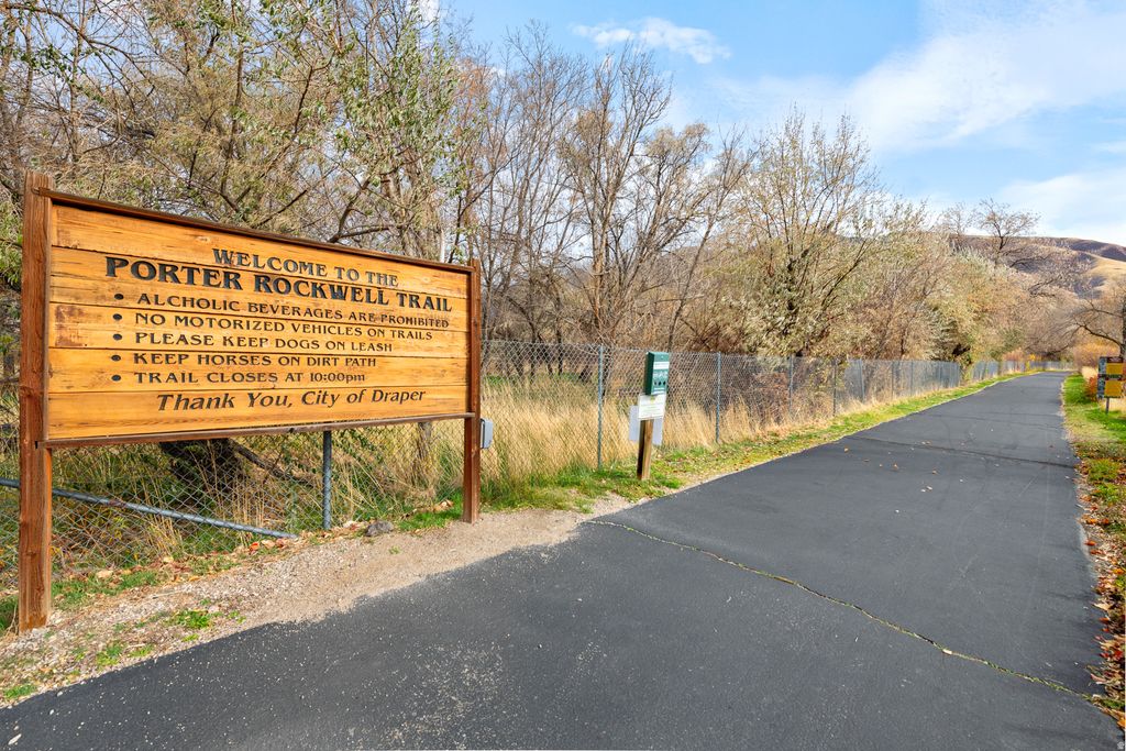 Half acre lot directly across from Draper Park. Backs up to Porter Rockwell trail and features unobstructed views of Wasatch mountains. Lot is empty and ready to build on. Includes water shares. Also zoned for horses. Owner has engineered plans of a 9,000sqft home that is ready to be built. See MLS 2124166. Or buyer can just purchase the lot.