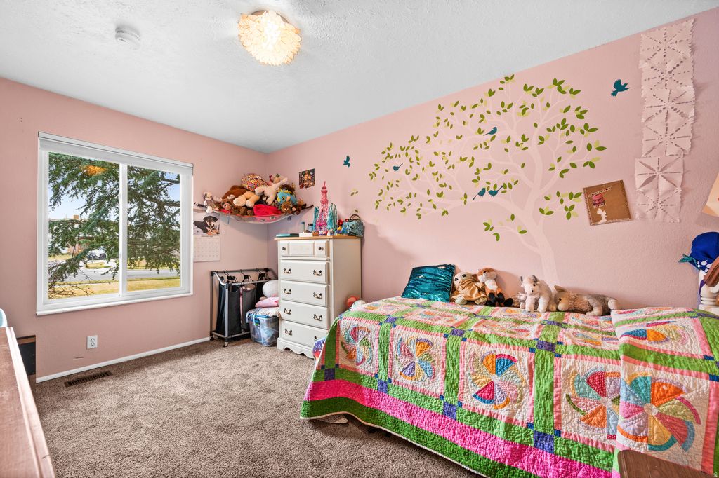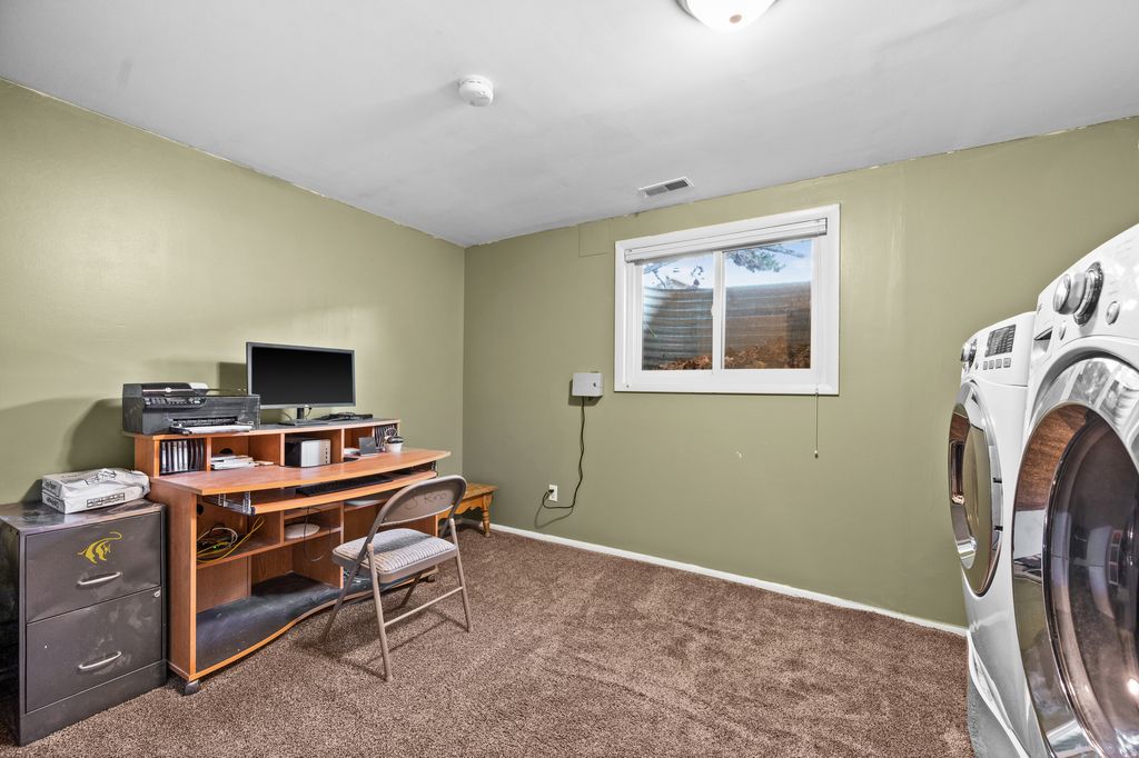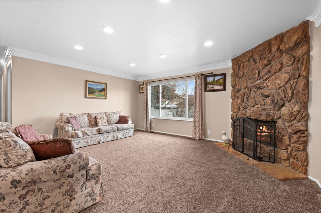 This charming rambler is located in a fantastic quiet neighborhood. As you enter this home you will find a formal entry to greet your guests. The kitchen offers warm tones and granite counter tops. The spacious living room is anchored by a fantastic fireplace. Offering plenty of light and seating opportunities this is a great place to settle in while entertaining or after a long day. The main floor Primary bedroom offers an En Suite and ample closet space. The main floor offers two other nicely sized bedrooms and a full bathroom. Downstairs you will find a spacious family room with plenty of room for a TV space and game table. The laundry room/office could be converted back to a 5th bedroom. The laundry could be moved back to the main floor just off of the garage where there is existing plumbing. The mature landscaping and fully fenced yard offers quiet and private outdoor living where you can enjoy mountain views. Permanent and Programmable Lighting Package is included with this terrific home. You can be festive through the Holidays and all year around with lights programmed straight from your phone! Located close to a park, shopping and restaurants. This is a must see!