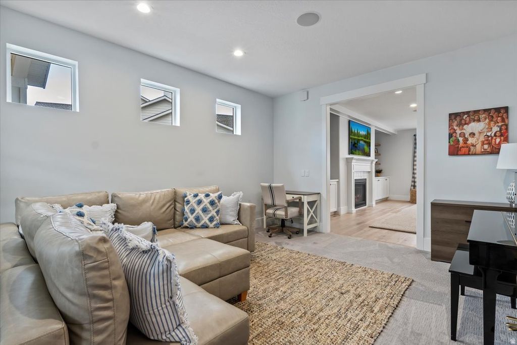 Spacious two-story home in one of Mapleton's most desirable neighborhoods at the base of Maple Mountain. Generously sized living areas and an open, functional layout make this home ideal for both everyday living and entertaining. The main living spaces are large and well-connected, complemented by a gourmet kitchen with high-end appliances and a butler's pantry. Additional features include a dedicated office, two expansive family rooms, a theater room, and an exercise room providing flexibility rarely found in homes at this price point. Enjoy outdoor living on the covered patio, plus an oversized four-car garage with an epoxy-sealed floor. Thoughtfully priced to move quickly, this home delivers exceptional square footage, amenities, and location making it one of the best values currently available in Mapleton. Square footage figures are provided as a courtesy estimate only and were obtained from county records. Buyer is advised to obtain an independent measurement.