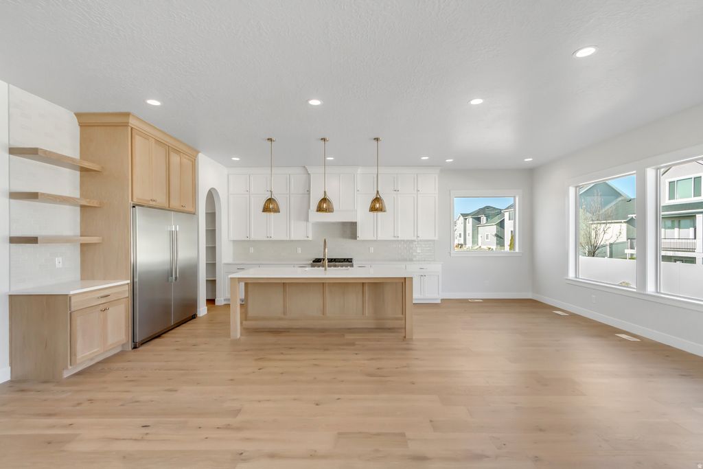 Picture yourself living in this one-of-a-kind semi-custom home by Cadence Homes. Wake up in this quiet Vineyard neighborhood close to beautiful Utah Lake! Amaze guests with all the custom finishes in this great gathering space. Featuring large pantry, custom lighting, oversized, soaring windows allowing natural light from all directions, custom cabinets throughout, beautiful backsplash, large quartz kitchen island, two gorgeous arched doorways, custom millwork and vent hood. On the main level find the private master retreat with plenty of windows and spacious luxurious ensuite. Discover at the top of the stairs and large landing 3 more inviting bedrooms all with walk in closets. Huge unfinished basement with a great deal of space to grow! Square footage figures are provided as a courtesy estimate only and were obtained from county. Buyer is advised to obtain an independent measurement.