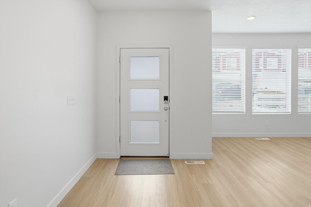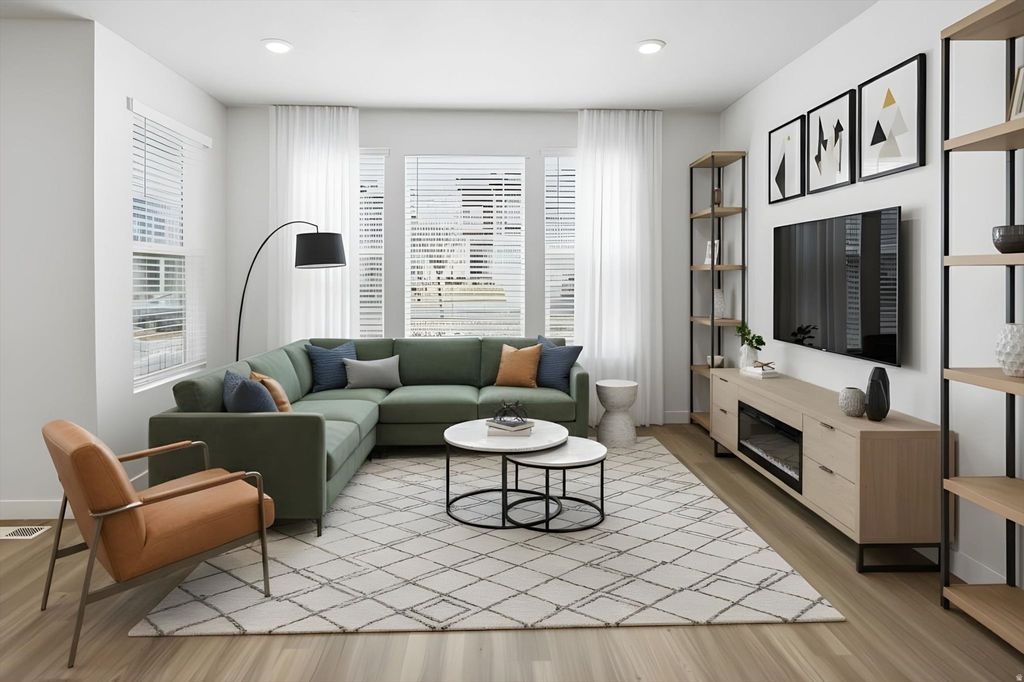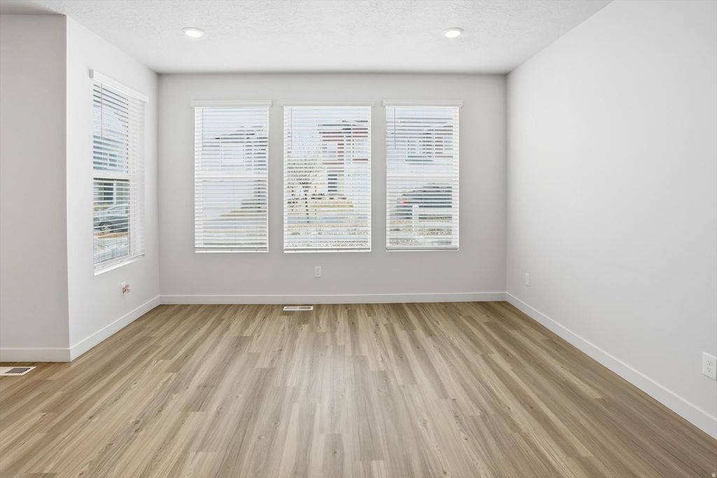 Why wait months for new construction just to move in and live without blinds for weeks and have buy a washer and drier? This spacious, like-new, move-in-ready townhome offers more square footage, a fully finished basement, and immediate occupancy-all at a price comparable to or better than many nearby new builds. Welcome to Sunflower Fields-where comfort, convenience, and recreation come together. Enjoy stunning valley and lake views as you arrive in this thoughtfully landscaped community, just minutes from Walmart, Smith's, Costco, restaurants, schools, and parks. With the Mountain View Corridor expansion and new road improvements recently completed, access to Salt Lake City and I-15 has never been easier! This home sits on the only street in the townhome section that allows on-street parking, a rare bonus for guests. The private, gated recreation area is now open and features pickleball courts, playgrounds, dog parks, plus a private lake and beach-all just a short stroll from your front door on the neighborhood's walking and biking paths. Another neighborhood park sits conveniently directly behind the townhome. Inside, large windows fill the open, modern layout with natural light. The kitchen flows seamlessly into the living area, making it ideal for entertaining or everyday living. Upstairs features a spacious primary suite, two additional bedrooms, a full bath, and a versatile den, office, or playroom. The fully finished basement adds exceptional flexibility and tons of space, with plush carpet and padding, a large open living space, walk-in closet, and huge full bathroom. Previously used as a second primary suite, it also makes an excellent home theater (projector outlet already installed), gym, playroom, or guest retreat. The additional finished square footage makes it hard to find another townhome with more square footage in the area! Unlike new construction, this home is truly move-in ready, complete with washer and dryer, window blinds, and finished spaces throughout-saving time, money, and hassle. Recently vacant, professionally cleaned, and ready for quick possession. Make this beautiful home yours today! And while we may not be able to compete with every builder incentive, **seller is offering 1/0 rate buydown with preferred lender - 4.981% first-year rate available.** Contact agent for details. Square footage figures are provided as a courtesy estimate only and were obtained from the same model properties. Buyer is advised to obtain an independent measurement.