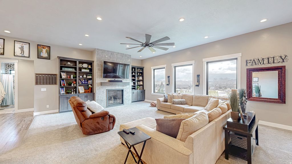 Rare opportunity to own one of Mona's most stunning custom-built residences the builder's own personal home, crafted with uncompromising quality and thoughtful details. Nestled in Mona city this property enjoys full city utilities no well or septic to worry about, a huge advantage in rural Juab County. Spanning an impressive 5,200 square feet with 5 spacious bedrooms, this entertainer's paradise delivers resort-style living on a generous 0.8-acre lot fully landscaped for low-maintenance beauty. Wake up to and relax with jaw-dropping panoramic views of majestic Mount Nebo. Key highlights include State-of-the-art private movie theater for family movie nights, Massive 7-car garage perfect for vehicles, toys, or a workshop, Fun bunk room ideal for guests, kids, or grandkids, Expansive asphalt driveway and huge covered porch for outdoor enjoyment, Gourmet full custom chef's kitchen designed for effortless entertaining, Luxurious primary suite as your private retreat, Professional full landscaping throughout the grounds. This one-of-a-kind custom home blends everyday luxury, practical features, and small-town serenity. Don't miss your chance to own this beautiful home.
