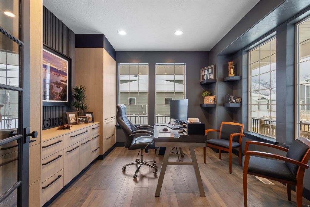 New Listing Tucked in this small and family oriented neighbiorhood with no through traffic. Finished landscaping in the front and back ready for your family to enjoy! Custom Finished upgraded office, upgrade Kitchen and Vaulted Ceilings. Massive 4 car Garage with extended height, width, and length comes with a custom workbench and cabinets for tools and ski equipment. RV/boat pad, custom built in trampoline this home has all your needs and more!