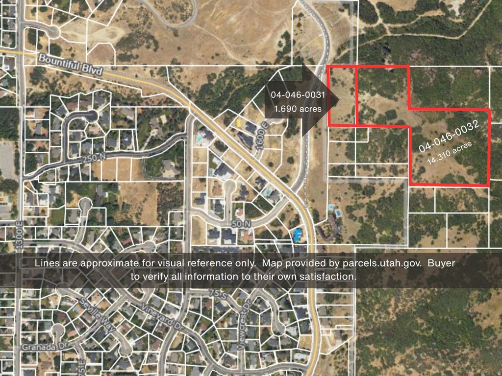 Escape to your own private foothill retreat on this remarkable 16-acre recreational property in Bountiful, Utah. Tucked just steps from the iconic Bonneville Shoreline Trail as it winds along Stone Creek, this land offers a rare blend of seclusion, scenery, and access to endless outdoor adventure. Enjoy breathtaking valley and lake views from multiple vantage points, with dramatic, steep terrain balanced by a flatter area at the top-perfect for soaking in the panoramic vistas. Surrounded by natural scrub oak and native vegetation, the property feels wild and untouched, ideal for recreation, hiking, wildlife watching, and quiet escapes into nature. Located near the Wasatch-Cache National Forest and only a short walk to the Ward Canyon Trailhead, this is a dream setting for outdoor enthusiasts seeking direct access to some of Davis County's most beloved trails and open spaces. A truly special opportunity to own a slice of Utah's foothills with unforgettable views and limitless recreational potential. Due to steep terrain it would be difficult if not impossible to build a structure. Currently there are no utilities services connected to the property. The sale includes two parcels for a total of 16 acres.