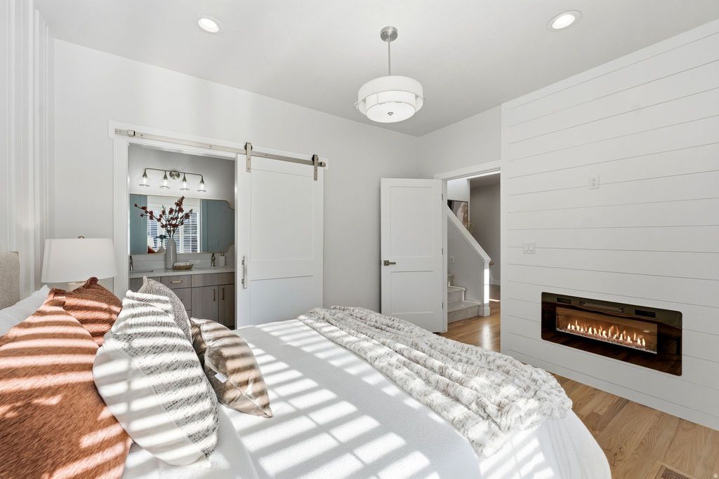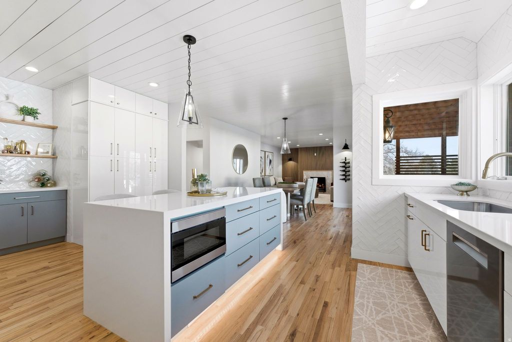 This stunning Pepperwood Estate is the definition of refined luxury-thoughtfully reimagined and impeccably executed from top to bottom. Every detail has been curated to deliver both beauty and effortless livability, blending elevated finishes, modern textures, and a layout designed for today's lifestyle. At the heart of the home is a show-stopping gourmet kitchen, seamlessly connecting to expansive accordion doors and a rear deck ideal for indoor-outdoor entertaining. The private primary suite is a true retreat, complemented by a secondary main-level guest en-suite for ultimate convenience. Additional standout spaces include a sophisticated executive office, serene yoga studio, open Sonos-equipped theater room with wet bar, and a dedicated kids' play zone-each space intentionally designed to elevate daily living. Set on a rare half-acre lot, the property captures picturesque mountain views and offers both a guest/delivery driveway and a separate owner's drive-an uncommon and highly desirable feature. Pepperwood Estates remains one of the valley's most coveted gated luxury communities, featuring 24-hour security, resort-style pool and patios, pickleball and tennis courts, clubhouse, and scenic walking trails-all supported by an exceptionally low HOA. Perfectly positioned with quick access to the Wasatch Canyons, Dimple Dell, and premier shopping, dining, theaters, spas, and Life Time Fitness, this home delivers an unparalleled combination of privacy, prestige, and convenience.