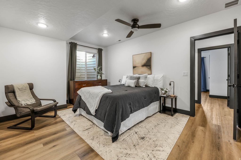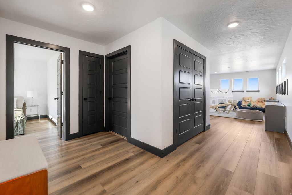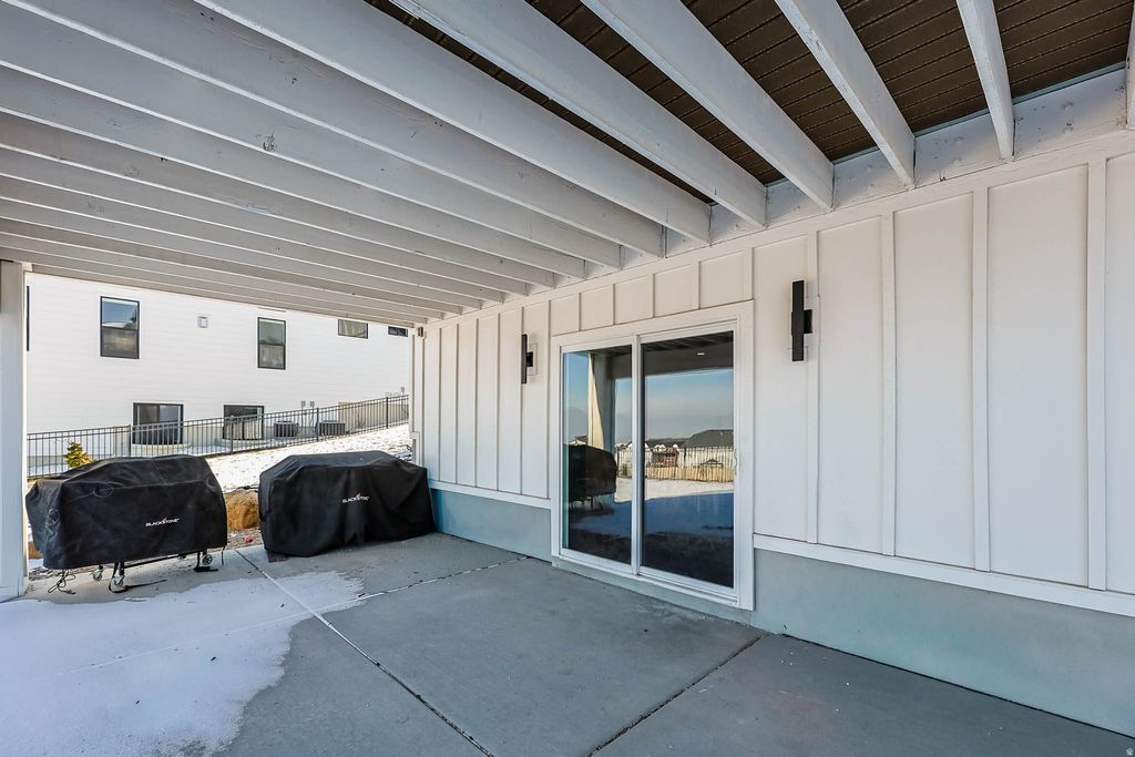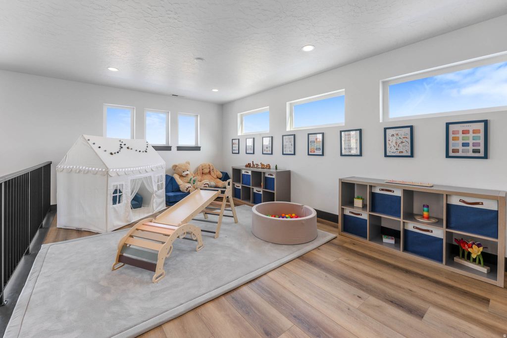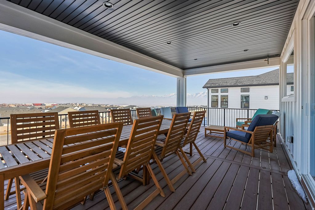 Set in a private, gated community at the base of the mountain, this stunning Herriman home offers the rare combination of breathtaking valley and mountain views, thoughtful design, and everyday livability, all just two years old. From the moment you arrive, the home makes an impression with its clean white exterior, custom steel pivot front door, and three-car garage. Inside, a warm and welcoming entry opens to a light-filled living space anchored by dramatic two-story windows that frame views across the valley. The open floor plan flows beautifully, creating a space that feels both expansive and comfortable. The heart of the home is the kitchen, dining, and family room, designed for gathering and everyday living. The kitchen features oversized island seating, double ovens, a large walk-in pantry, beautiful wood cabinetry, and a sink perfectly positioned to take in the view. Just off the living area, step onto the covered deck, complete with a gas line and plenty of space for quiet mornings or evening entertaining. The main-floor primary suite offers a peaceful retreat with large windows showcasing the views, a spacious walk-in closet, and a well-appointed bath with dual sinks, separate tub and shower. Also on the main level are a dedicated office, 1.2 bath and a laundry room, adding to the home's thoughtful layout and one level living option! Upstairs, you'll find three additional bedrooms, a full bath, and a generous open loft with two flexible living areas, perfect for a play space, homework zone, library, office or additional lounge. An upper-level laundry room and ample storage make daily life easy and organized. The walk-out lower level expands the home even further, featuring two bedrooms, a full bath, a bonus room, a theater/family room, and a kitchenette with a full refrigerator. The projector and screen are included, making it ready for movie nights from day one. Outside, the covered patio and fully landscaped, fenced yard include fruit trees, an upgraded gas fire pit, and plenty of space to relax or entertain. This quiet, small community offers walking paths, mountain views, and frequent wildlife sightings, while still being conveniently close to shopping, dining, and freeway access. Refrigerators, washer and dryer, and fire pit are included, making this home truly move-in ready. With its incredible views, flexible spaces, and attention to detail throughout, this is a home designed to be lived in and loved. List of some upgrades that make this home stand apart: - epoxy garage floors - 3 stage water filter (reverse osmosis) - steel pivot door - induction cooktop - whole house humidifier - UV whole house water filter - water softener - washing machine ozone system - prewired theater projector, screen, and speakers - gas plumbed fire pit (custom Montana Fire pit with upgraded burner included) - fruit trees (apple, peach, pear, and plum) - gas plumbing for heaters or BBQ on main level and walkout basement - garden zoned irrigation - floor outlets throughout home - 3 large storage racks in cold storage Square footage figures are provided as a courtesy estimate only and were obtained from county. Buyer is advised to obtain an independent measurement.