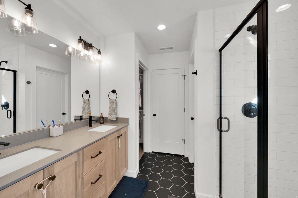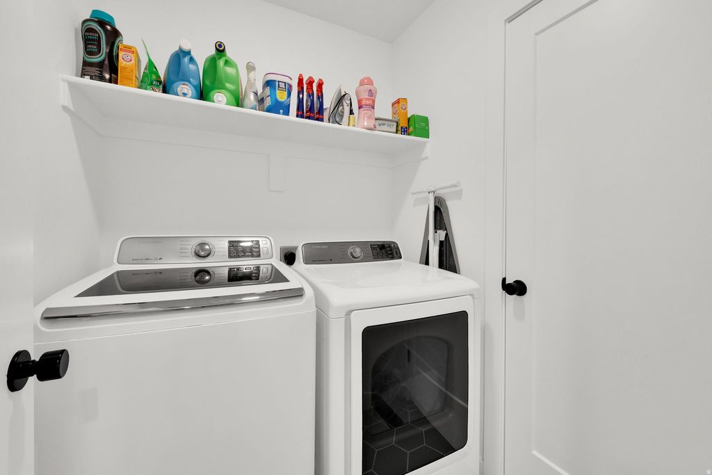 This beautifully designed home in the heart of Daybreak offers an exceptional blend of luxury, comfort and has a thoughtful layout . This incredible 5-bedroom, 3.25-bathroom residence features a highly functional floor plan with 9-foot ceilings on every level, creating an open, spacious feel. From the moment you step inside, you'll appreciate the high-end finishes and custom cabinetry, complemented by durable LVP flooring, elegant tile showers. The gourmet kitchen is the focal point of this home designed for both everyday living and entertaining with high-end appliances, a massive island, stunning quartz countertops, all bathed in natural light from oversized picture windows. The fully finished basement is impressively spacious and versatile that is perfect for movie nights, hosting guests, or entertaining with ease. Every space has been carefully curated to maximize comfort, functionality, and flow. Located in the quiet and desirable Cascade Village, this home conveniently is in close proximity to parks, schools, restaurants, and shopping. Built by Daybreak's luxury home builder, additional highlights include two 240V plugs for EV charging in the garage, making this home as forward-thinking as it is beautiful. Truly a MUST SEE!