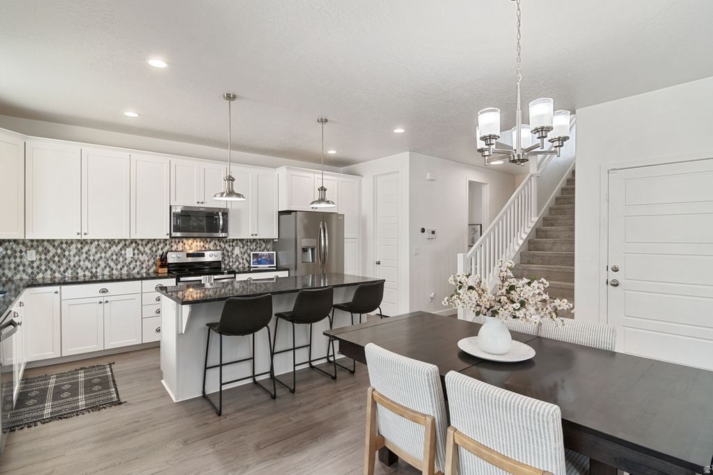 Fantastic Bluffdale home!! Beautifully maintained home with brand new laminate and plush carpet. Boasts a newly finished basement with custom cabinetry/console and upgraded finishes. This house is open and spacious, has a great flow and plenty of room. Large rooms, huge primary suite with walk in closet, separate tub and shower, lots of natural light and an amazing loft/play room. Solar keeps utility bills low. Great neighborhood close to schools, parks, walking trails and easy access to freeway.