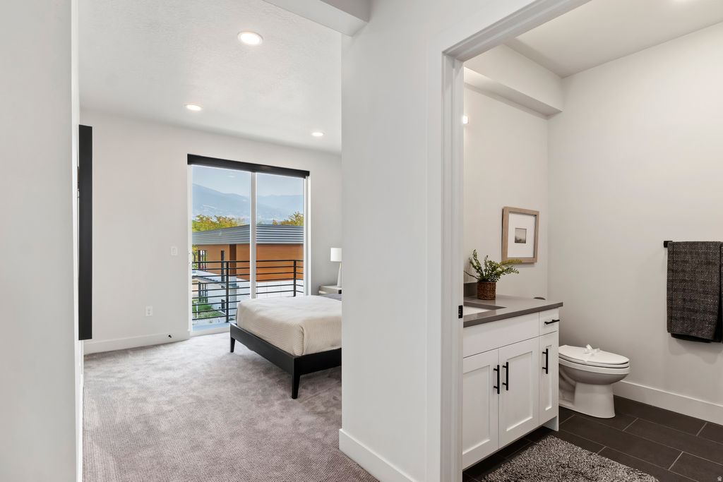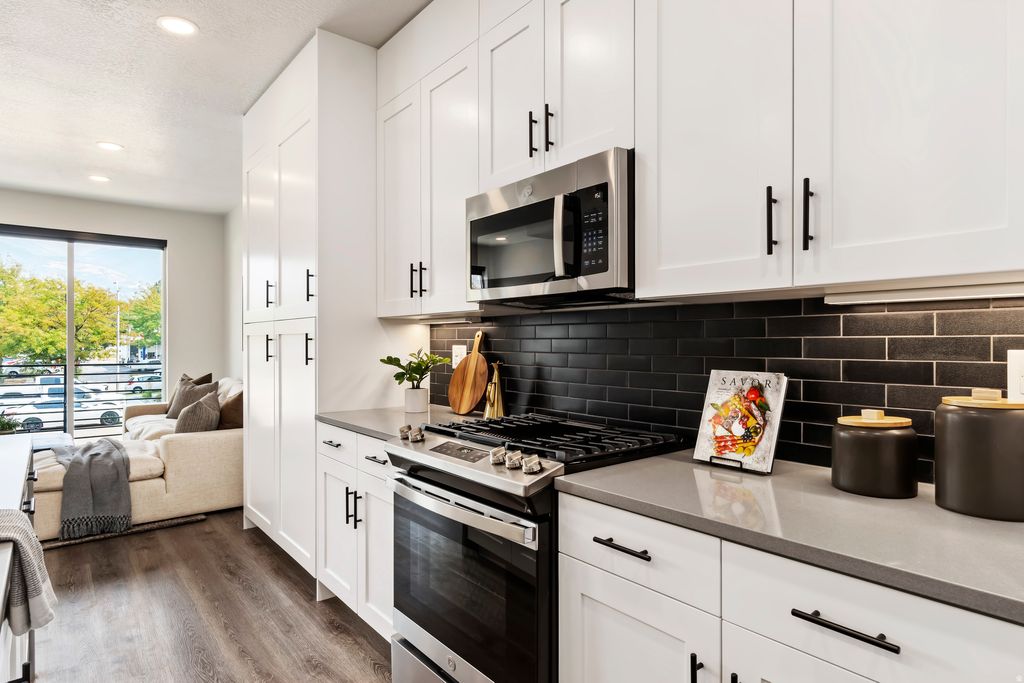 ONLY 2 UNITS REMAINING! Welcome to these modern, stylish urban townhomes located on Historic Main Street in Bountiful, offering contemporary design and exceptional walkable living. Inside, enjoy a bright, open layout with 9-foot ceilings throughout, creating a spacious and inviting feel. The kitchen features sleek white cabinetry with ample storage, perfectly complementing the home's modern aesthetic. Every detail has been thoughtfully curated to reflect clean, contemporary design. Step outside and enjoy walking access to local shops, restaurants, and community gathering spots, all just steps from your front door. High-quality roller shades on every window provide both light control and privacy, while large windows throughout fill the home with natural light and showcase beautiful views. The tandem two-car garage is spacious and finished with high-quality paint, adding both functionality and polish. Don't miss this final opportunity to be part of one of Bountiful's most desirable Main Street communities.