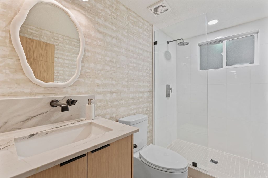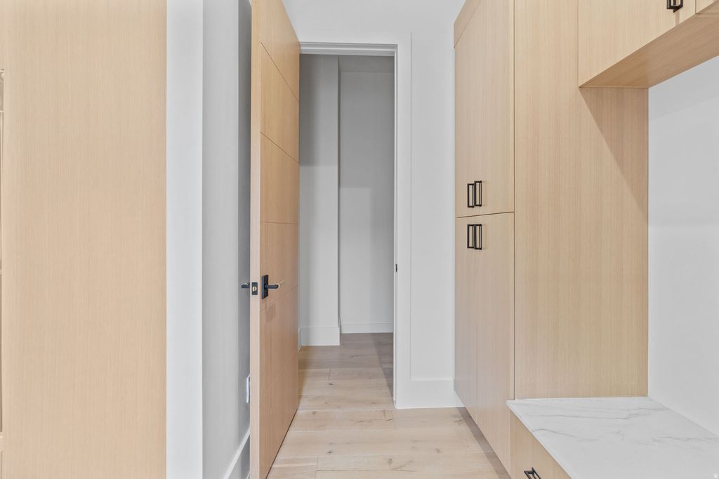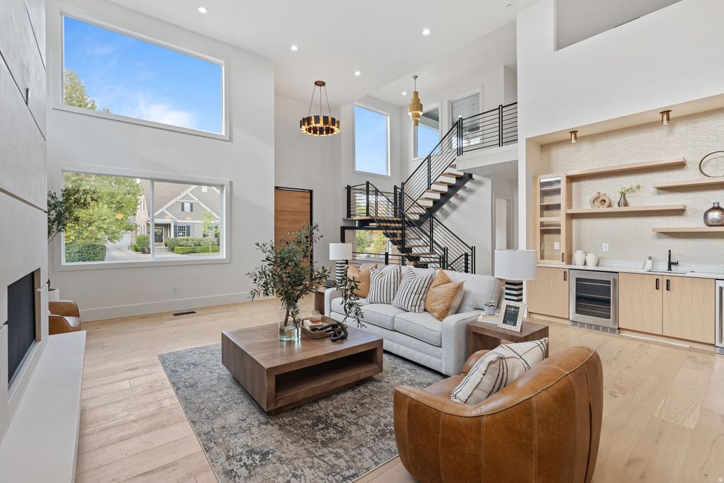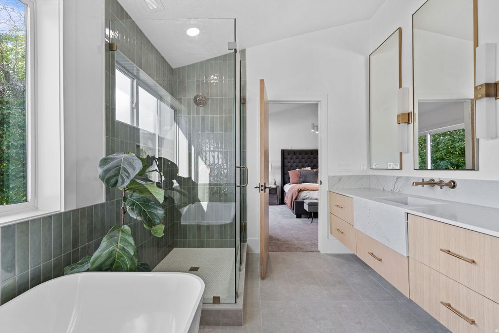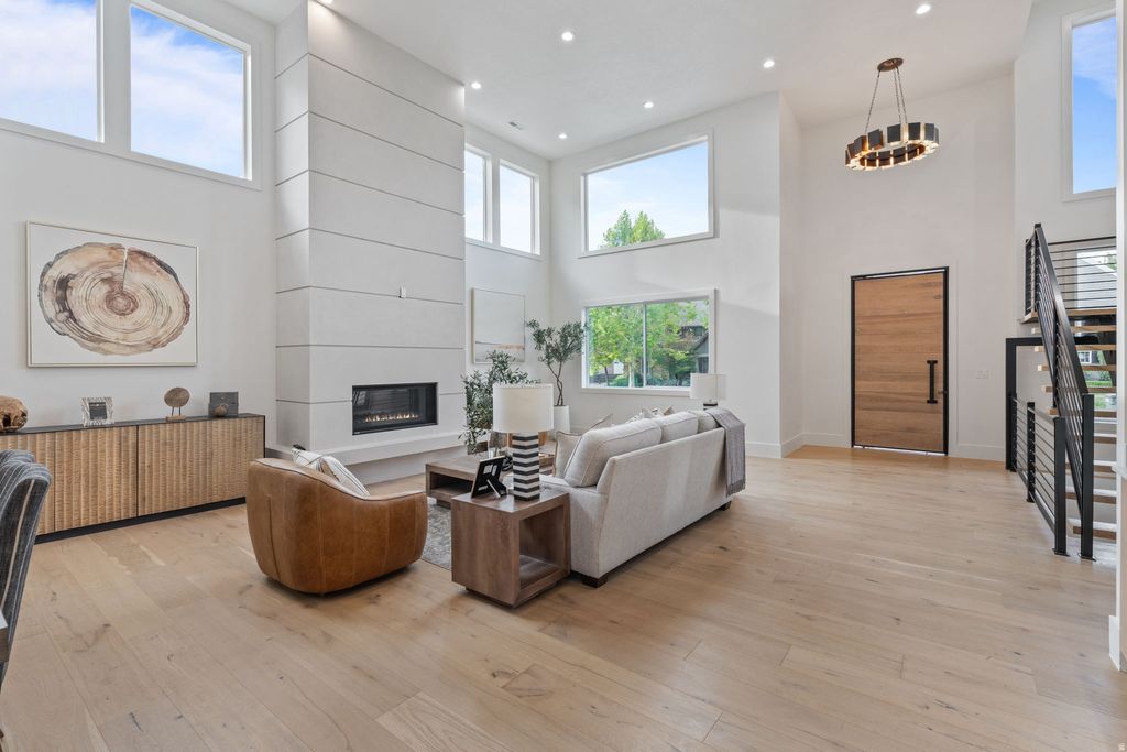 Parade-of-Homes caliber custom home on prestigious Atkin Avenue in Millcreek-just blocks from Salt Lake Country Club and minutes to downtown and Sugar House. Built in 2025 by 369 Homes, this light-filled residence showcases expansive windows and multi-panel sliders framing sweeping Olympus mountain views. The open-concept great room flows seamlessly through living, dining, and a showpiece kitchen featuring Mont Blanc quartzite with waterfall edges and integrated sinks, custom cabinetry, designer lighting, solid-core white oak doors, and wide-plank flooring throughout. The fully finished walkout lower level adds exceptional flexibility with a second kitchen / mother-in-law setup, wet & dry bar, and space ideal for a theater, recreation lounge, or golf simulator. Multiple covered and open patios, decks, and balcony extend the living space outdoors, complemented by full landscaping and automated irrigation. A detached 3-car garage with extra width/length, RV parking, and an EV charging station rounds out this rare blend of prime location, modern design, and elevated craftsmanship.