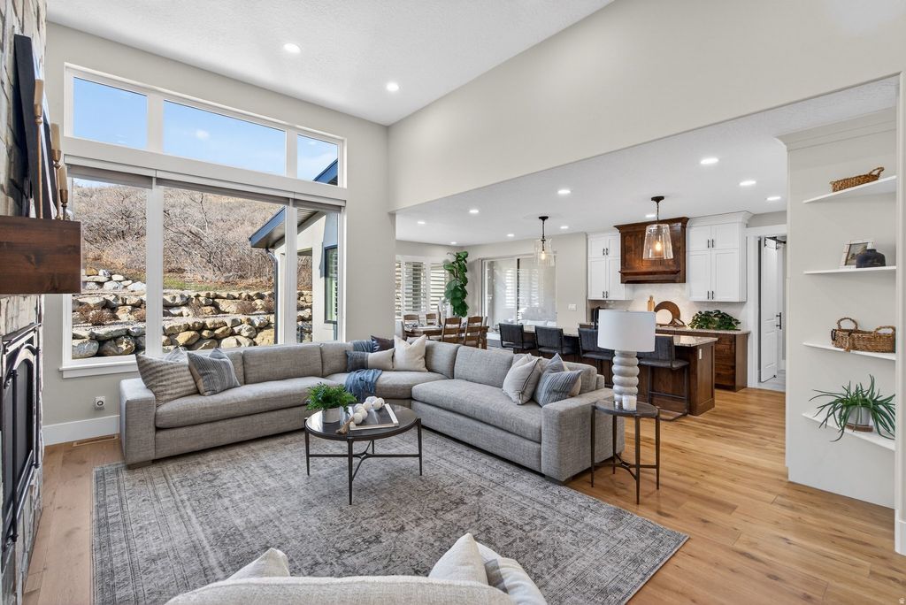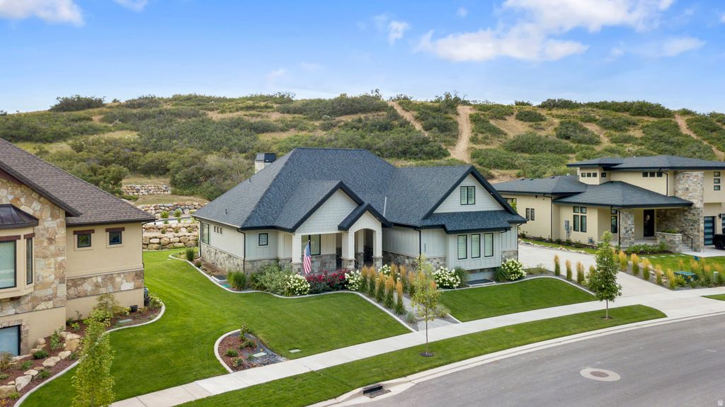 ***OPEN HOUSE***SAT JAN 24TH**** 11 am - 1 pm**** Set within the prestigious Mapleton Hidden Hollow Subdivision, this luxury residence offers refined living, thoughtful design, and breathtaking views of Maple Mountain-all on a beautifully terraced -acre lot. Priced at $1,950,000, this home seamlessly blends high-end craftsmanship with everyday comfort in one of Mapleton's most sought-after neighborhoods. The main level welcomes you with a bright, open floor plan designed for both entertaining and daily living, featuring hardwood flooring, vaulted and tray ceilings, and a striking stone fireplace that anchors the living space. Custom shutters, meticulously designed closets and pantry systems, and a central vacuum with a hide-a-hose feature highlight the attention to detail throughout. The home is equipped with three Bryant variable-speed HVAC systems and a whole-home generator, ensuring year-round comfort and peace of mind. Step outside to the outdoor living patio, perfectly positioned to capture mountain views and the tranquility of the surrounding landscape. The fully finished basement is a destination of its own, featuring radiant heat, a separate exterior entrance, and a full kitchen with custom pantry-ideal for entertaining or multigenerational living. Recreation and wellness take center stage with a game room, exercise room, and a professional-grade racquetball court, while finished, heated storage rooms and a high-efficiency boiler system add both function and efficiency. From the epoxy-finished garage to the integrated sprinkler and drip systems, every element of this home has been carefully curated to support luxury living at its finest. This is a rare opportunity to own an extraordinary property in Mapleton's Hidden Hollow where space, quality, and location come together flawlessly. Square footage figures are provided as a courtesy estimate only and were obtained from County Records. Buyer is advised to obtain an independent measurement.