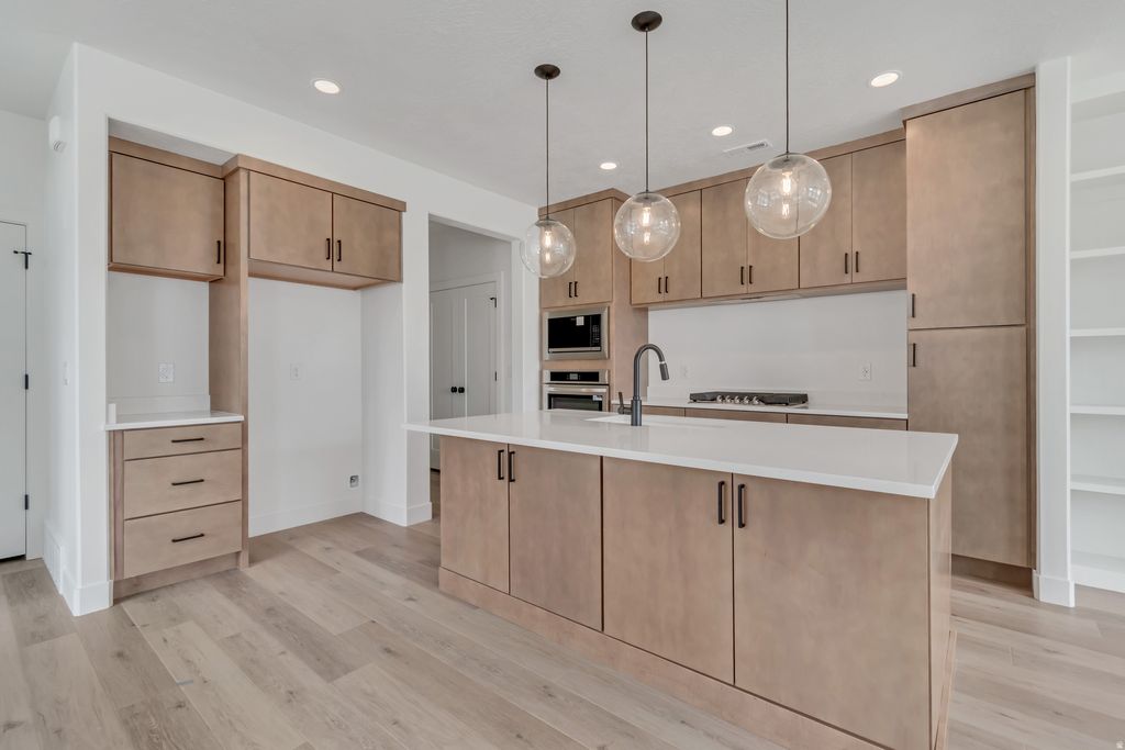 Step into the Wildwood floorplan living at its finest! This gorgeous corner-lot home features a chef-inspired kitchen with a Built-in range, hood, and wall oven!, With lofty 9-ft ceilings on all levels the primary suite stuns with a vaulted ceiling and your own private balcony-perfect for morning coffee or sunset unwinding! With warm wood cabinetry, sleek quartz counters, and access to open land and miles of trails, this home blends luxury with nature in all the best ways. This is the LAST Wildwood until late summer! Completion April 2026