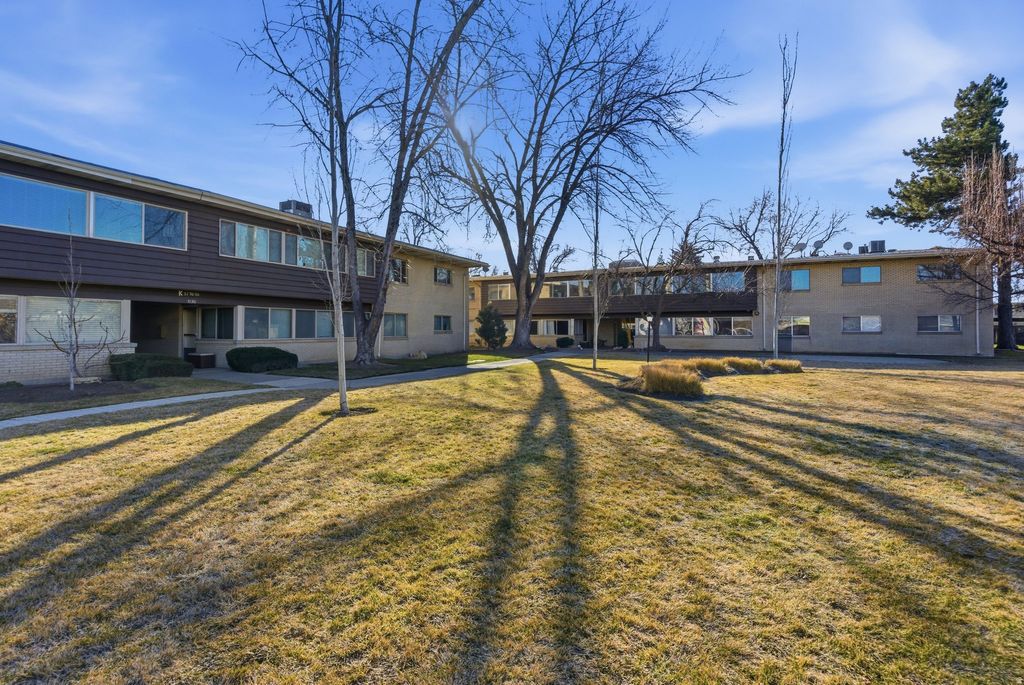 One of the nation's earliest cooperative communities, Graystone Condominiums sits in the middle of Sugarhouse within walking distance to shops and restaurants. This unit maintains midcentury charm with built-in wood shelving and large windows for ample natural light and views of the landscaped grounds. New Heating/AC Unit (2023), vinyl flooring, carpet, fridge, and oven (2021). Square footage figures are provided as a courtesy estimate only and were obtained from County Records. Buyer is advised to obtain an independent measurement.