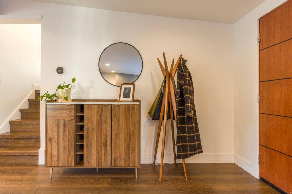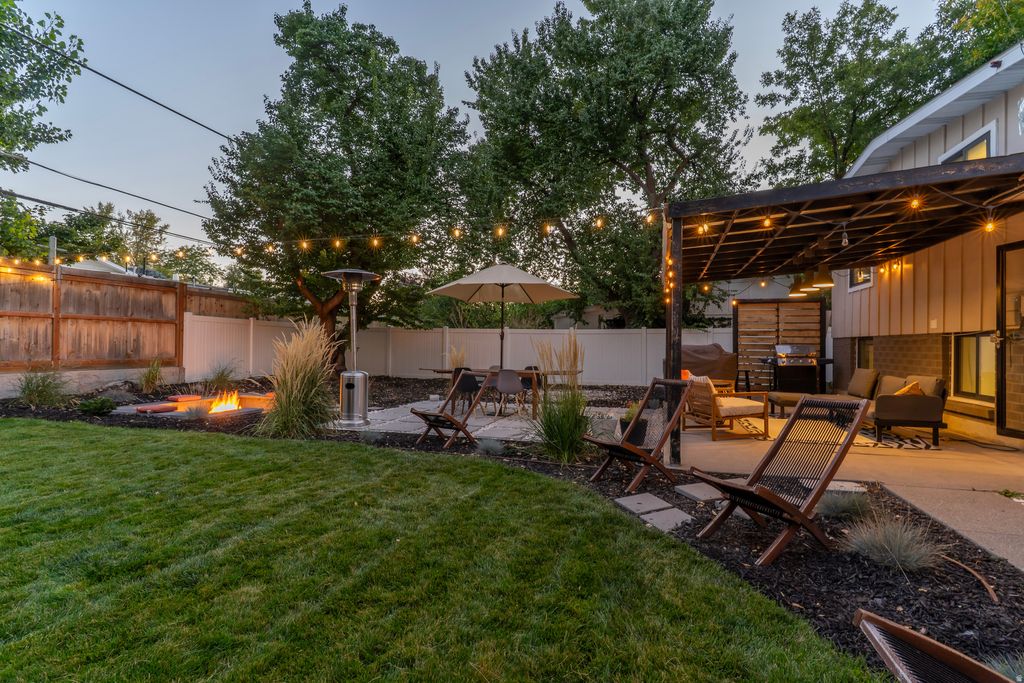 This stunning, fully remodeled residence is perfectly positioned in a charming east side neighborhood near I-215, surrounded by outdoor amenities. Enjoy walking-distance access to Wheeler Farm via a scenic trail, summer farmers markets, and easy connectivity to the Murray Canal Trail. The home has been meticulously modernized down to the studs with style and performance in mind. The kitchen is a showpiece, featuring a quartz waterfall countertop, updated cabinetry with storage on both sides of the island, and stainless-steel appliances and vented hood. The open living space is warm and inviting with a gorgeous picture window and cozy gas fireplace which features a remote, blower and passive heat system. The steel beam complements the vaulted ceilings and upgraded lighting. Luxury vinyl plank flooring, metal railing and modern doors set a sophisticated tone. Comfort is enhanced year-round with a whole-home AprilAir humidifier, maintaining ideal winter humidity and closed-cell insulation in the living room. Every bathroom has been completely remodeled with floor-to-ceiling tile, new vanities, toilets, fixtures, and flooring. Additional upgrades include blackout shades in the primary bedroom, built-in desks in the lower level and an included LG Tower washer and dryer. The attached two-car garage features durable polyaspartic flooring for easy cleaning. The home also has a 200-amp electrical service upgrade. Step outside to a lush, well-maintained, fenced yard with vibrant spring flowers, mature foliage, and a recessed backyard fire pit-perfect for relaxing or entertaining. With countless thoughtful improvements, plenty of room for RV Parking and no HOA, this home offers modern living and classic convenience in a location that truly has it all.