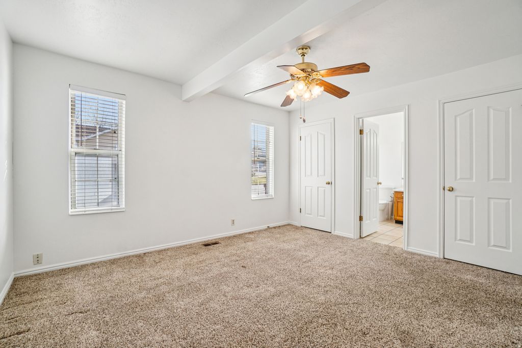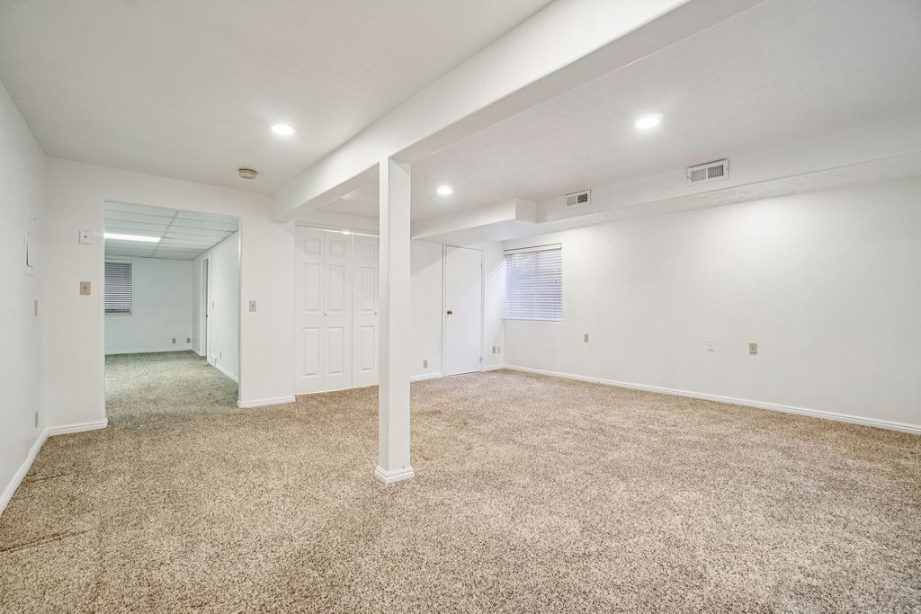 Presenting a meticulously maintained town home featuring three bedrooms, with potential for a fourth, and two-and-a-half bathrooms. This residence offers a spacious, open floor plan with generous living areas and a fully finished basement that includes a full bathroom, bedroom, and bonus room. The kitchen is equipped with modern appliances and ample cabinetry, blending seamlessly into the adjacent dining and living spaces, ideal for entertaining or family gatherings. The main level accommodates two well-proportioned bedrooms, including a sizable primary suite with an en-suite bath, allowing for convenient single-level living. Additional amenities comprise an attached one-car garage, a covered carport, and extra storage space. Located within a tranquil and welcoming community just minutes from parks, shopping, and I-15, this home is move-in ready and competitively priced.