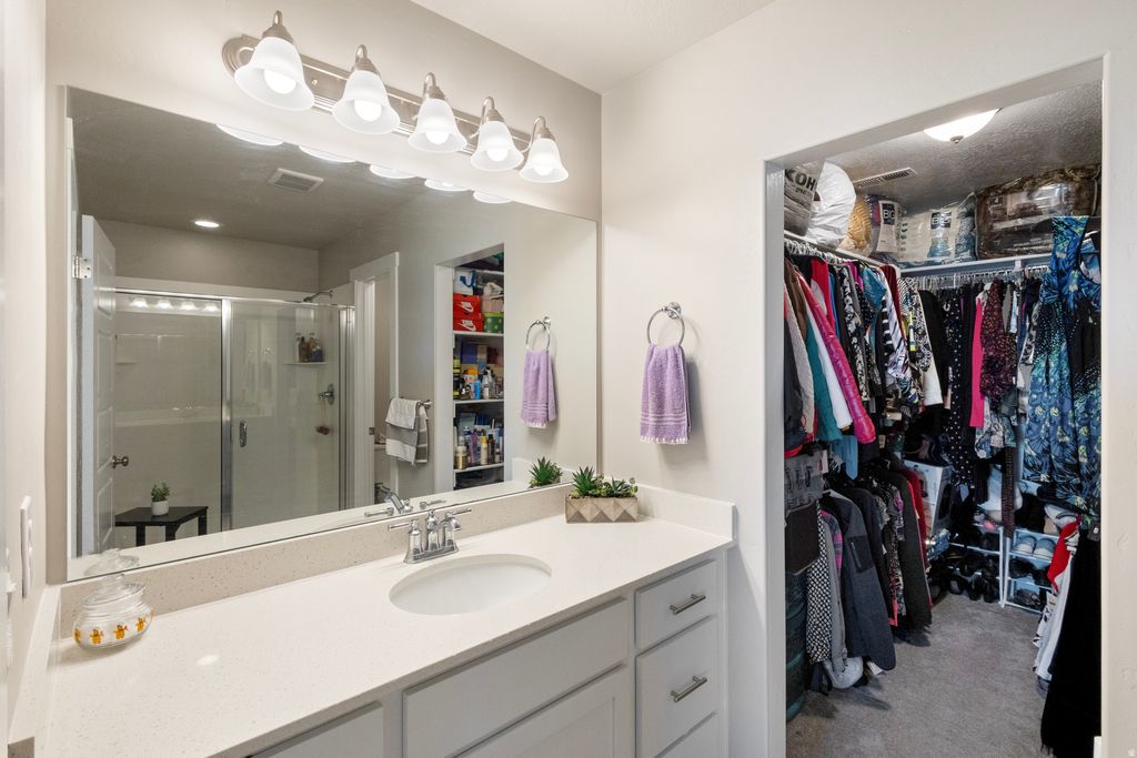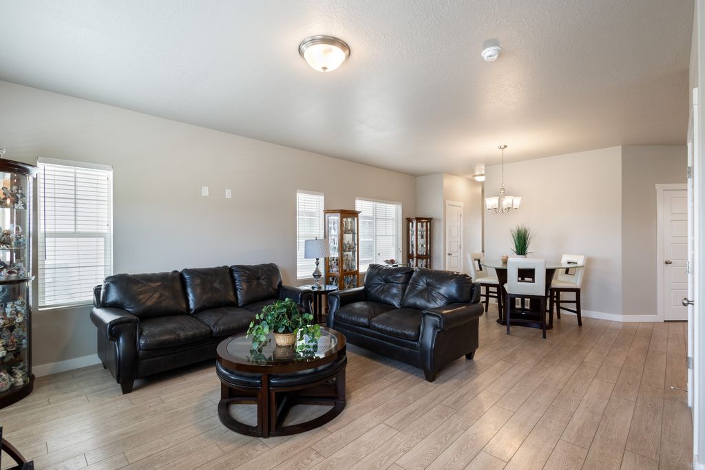 Impeccably maintained and move-in ready, this beautiful 5-bedroom, 4-bath home offers the ideal mix of space, comfort, and design. Built in 2022 by respected Ivory Homes, the home has been thoughtfully upgraded and shows true pride of ownership throughout. The open-concept main level features quartz countertops, upgraded cabinetry, and durable flooring that flows seamlessly through the living spaces. One of the standout features is two full kitchens, including a second kitchen in the finished basement, perfect for multi-generational living, guests, rental potential, or entertaining. Upstairs, a spacious loft provides flexible use as a home office, media room, or play area. The north-facing owner's suite offers generous space, a glass-enclosed walk-in shower, and clean, timeless finishes. Additional highlights include a 40-gallon water heater, energy-efficient systems and water softener. Enjoy easy, low-maintenance living with fully landscaped grounds maintained by the HOA. Conveniently located just two minutes from freeway access and directly across from a neighborhood park, this home offers both accessibility and a great community setting. A rare opportunity to own a newer home with space, style, and versatility. Square footage figures are provided as a courtesy estimate only and were obtained from county records. Buyer is advised to obtain an independent measurement. Hermosa casa de 5 dormitorios y 4 baos, impecable y lista para mudarse. Construida en 2022 por Ivory Homes, ofrece diseo abierto con encimeras de cuarzo, gabinetes mejorados y pisos durables. Cuenta con dos cocinas completas, incluida una en el stano terminado, ideal para vida multigeneracional o renta. Loft amplio en planta alta y suite principal orientada al norte con ducha walk-in. Sistemas eficientes, suavizador de agua y jardines mantenidos por la HOA. Ubicacin privilegiada frente a un parque y a solo minutos del acceso a la autopista. Metraje aproximado; comprador debe verificar.