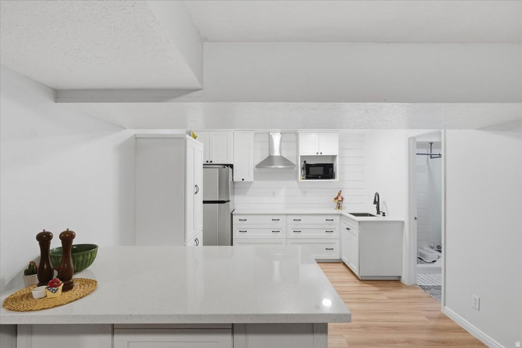 Open House Saturday 11-1 pm. Beautiful rambler in a quiet Orem cul-de-sac featuring 4 bedrooms and 3 bathrooms, plus a custom office with built-in desk, bookcases, and storage that could easily serve as a 5th bedroom. The updated basement kitchen showcases stylish quartz countertops, perfect for added living space or entertaining. Enjoy the large, private yard with vinyl fencing -- ideal for relaxing or gatherings. Located in a highly desirable neighborhood close to everything Orem has to offer, this home blends comfort, flexibility, and location all in one. See today!