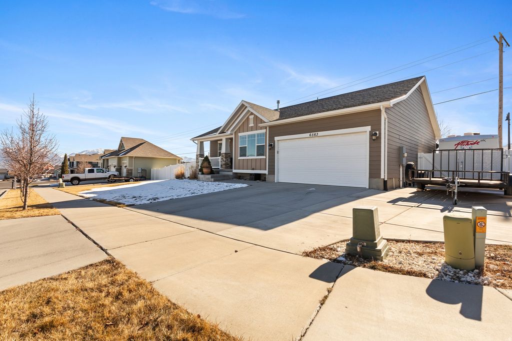 Welcome to this open-concept rambler located in the heart of Herriman, featuring beautiful mountain views. Situated on a fully landscaped 0.23-acre lot, this home offers true main-floor living with a spacious and functional layout ideal for both everyday living and entertaining. Enjoy a large, open backyard with ample space for outdoor gatherings, gardening, or relaxing in the hot tub while taking in the surrounding scenery. Conveniently located just minutes from popular restaurants, shopping, and everyday conveniences, this home combines comfort, space, and an excellent location. Buyer to verify all information and measurements. No showings before 4pm M-Fri.