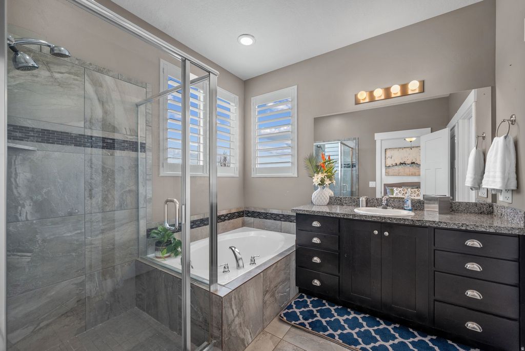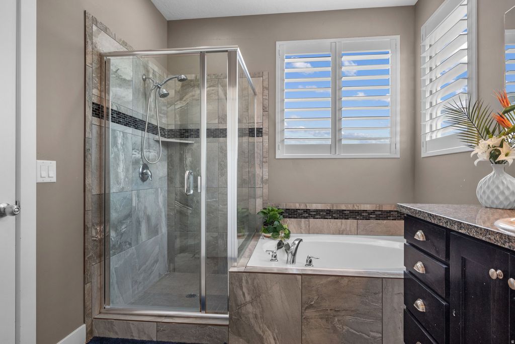 Attractive, well-cared-for home with new paint inside and out. Features include tall & vaulted ceilings, office & bonus room. Additional amenities include a spacious kitchen with corner pantry, granite counters throughout, low-maintenance split shutters and an amazing central vac system. There's even a wall safe in the primary BR closet! The large, deep 1/2 acre lot has water & power in the back and open land behind it, with frisbee golf, parks & trails nearby. Enjoy mountains, large wildlife, and valley views from the covered patio, and city lights at night. Plenty of room for toys, too: large 61' x 16' RV pad, plus huge 4-car garage with heat & hot water. Backyard is fenced except for one small section in front. Seller is offering Buyer $5,000 towards buyer carpeting or closing costs. Square footage figures are provided as a courtesy estimate only and were obtained from county records. Buyer is advised to obtain an independent measurement.