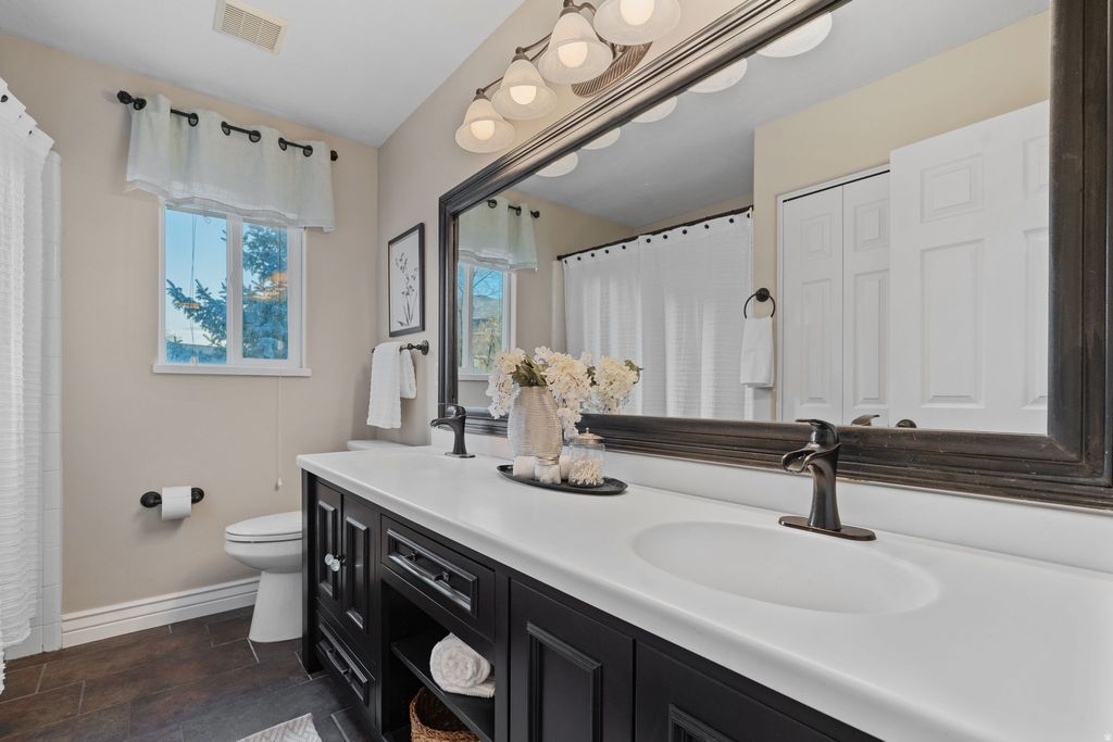 Incredible Draper Rambler at the end of a quiet Cul-de-sac on .46 Acres! Featuring a massive side yard, for the kids to play ball, or its ready for your pool, pickleball court, large shop, etc. Then find yourself relaxing on the back deck or back brick patio surrounded by beautiful landscaping, garden boxes, a quaint green house, all in privacy (hot tub hookup on patio)! There is a large RV pad with its own cleanout/dump site. There is also a 220 V plug in the 3 car garage for your EV. Step into a well maintained home, featuring a very tastefully updated kitchen, including a large quartz island, eye catching lighting/pendants, SS appliances (gas range), and ample amount of cabinet space. The home has newer paint, a new roof (2024), new AC/furnace (2022), 2 gas fireplaces, and great bones throughout. In addition to the large entertainment and family areas, there is a combination of a private office & 3 spacious bedrooms on the main level, including the primary ensuite. The remodeled primary ensuite screams luxury with its euro style shower, its separate soaking tub, and its updated vanities! Downstairs is clean, versatile, functional, and it has its own walkout / basement entrance. There are three large bedrooms downstairs as well, but they may even work better as a theater room, media room, exercise gym, game room, man cave, etc. There is enough space to add a basement apartment for that generation living or additional income. Come tour this house today and see how this well located rambler at the end of this quiet circle could be your home!