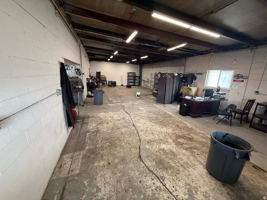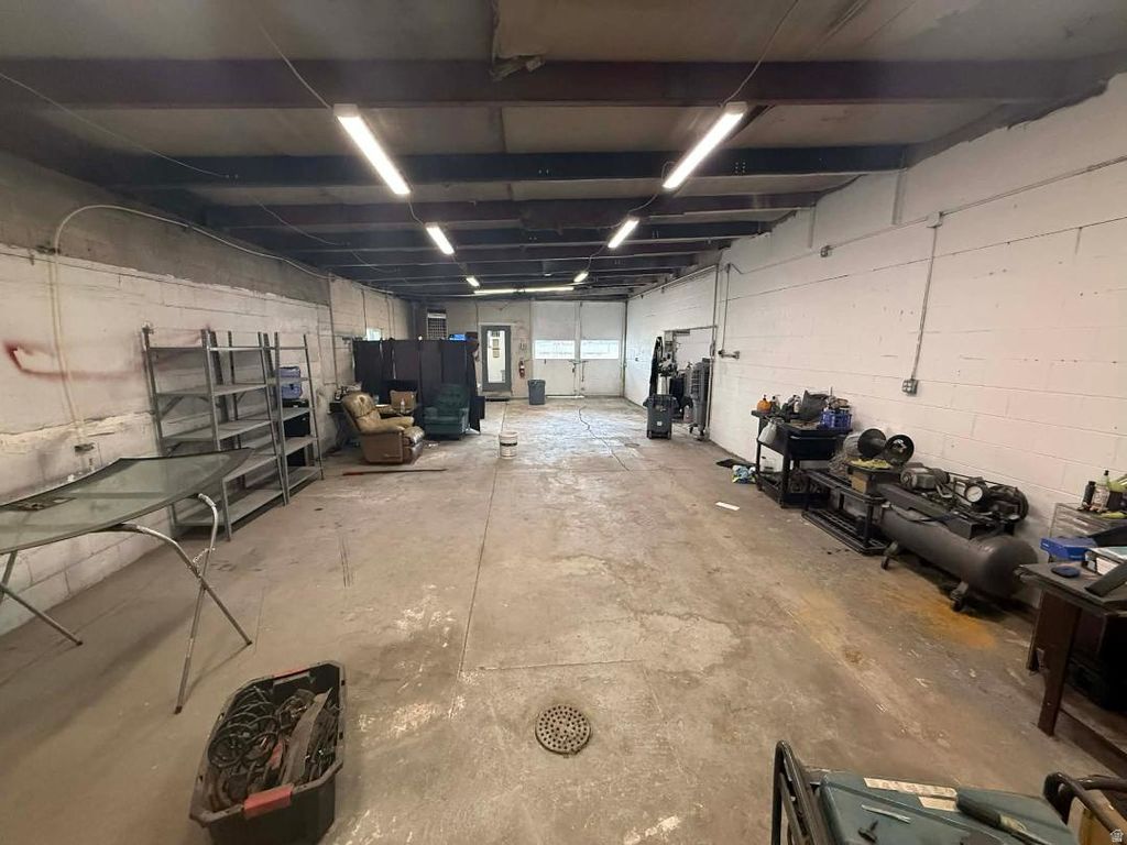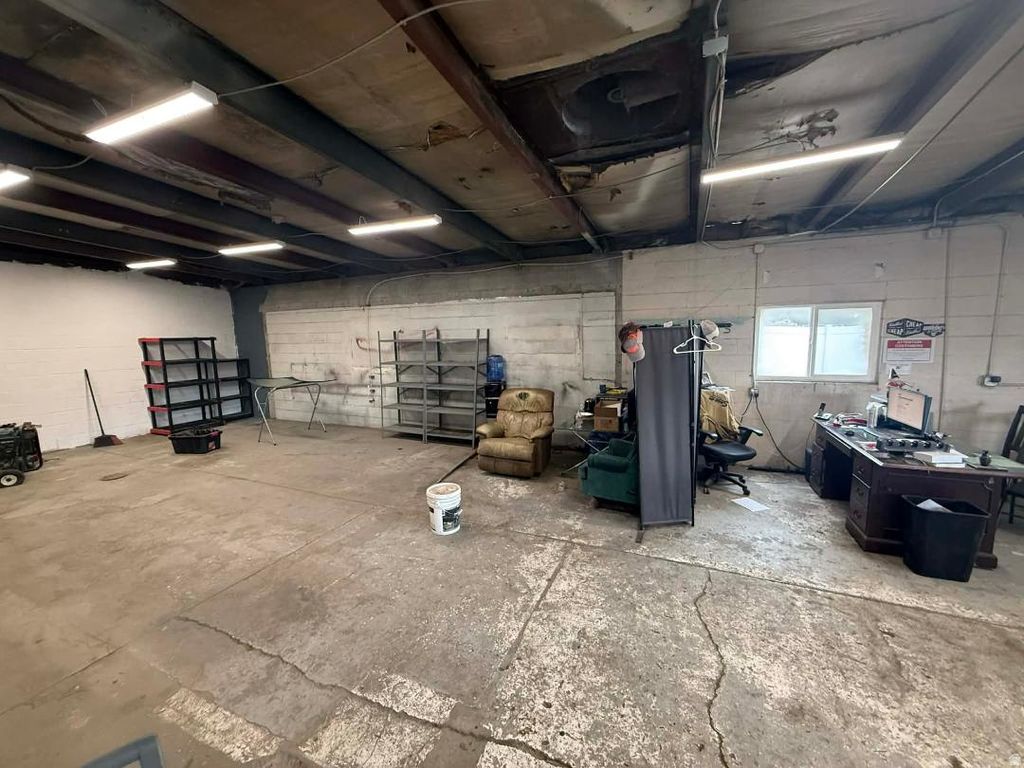 Industrial space for lease. 1078 sq ft of Prime commercial use. Shared use of bathroom and waiting area. Mechanic shop, woodworking or many other possibilities.