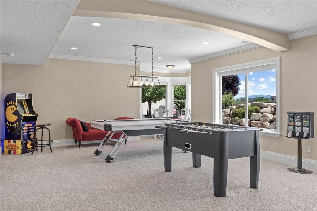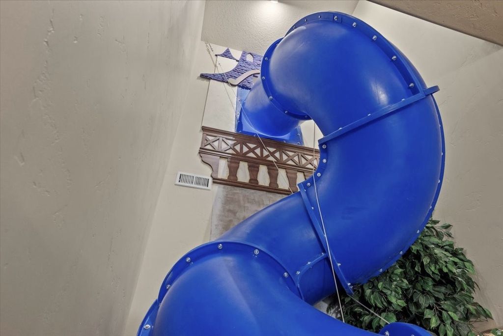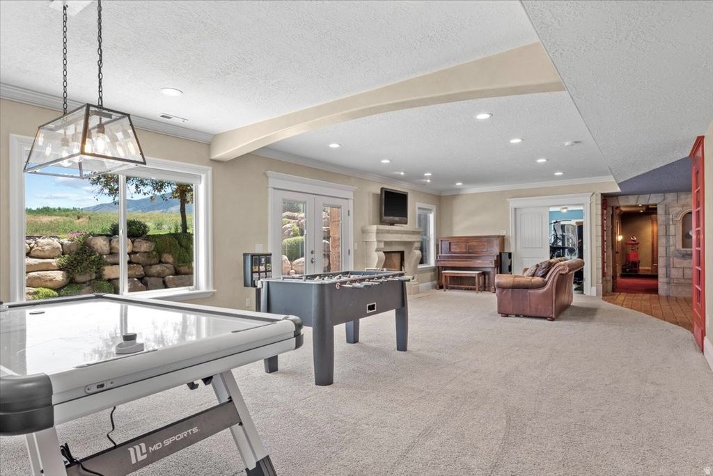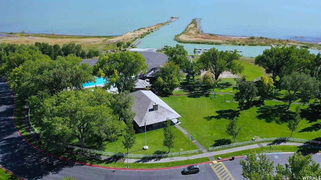 Updated ultra-custom masterpiece, located in a private lakeside resort community, backing Talon's Cove Golf Course with views of Mount Timpanogos, Utah Lake and one of the most scenic fairways in Utah. Prime location, timeless design, and quality craftsmanship with attention to every detail make this one of Saratoga's finest and most uniquely impressive homes, which must be seen in person to fully appreciate. The main level is ideal for gatherings with a grand entry, extensive great room with soaring windows and ceilings, gourmet kitchen with a butler's pantry, and formal dining. The main-level primary suite extends into the southeast tower, providing a sanctuary space with panoramic views, and includes a spa-like bathroom, and an expansive closet with built in shoe racks, drawers and an island, along with secondary laundry hookups. Additional main-floor highlights include a two-story executive office/den/library with floor-to-ceiling windows, built-in workspace and bookshelves, and coffered ceilings; a mud room area with abundant cabinetry for storage.; and an extensive laundry room with flex space for crafts, projects, home business or other use. The daylight basement is a wonderland for all ages. Children (or the young-at-heart) might prefer to skip the stairs and access the basement by taking a concealed slide from Rapunzel's Tower to Cinderella's Castle on the way to Snow White's Cottage, and passing by the Beast's Den before exiting into a vintage English street setting (Harry Potter themed occasionally) with a parlor leading to a luxury theater including stadium seating and Dolby Atmos surround sound for a true cinematic experience. Other basement features include a massive family room with space for a wide variety of recreational activities; a corner tower room with panoramic windows, a guest bedroom and bathroom suite; a large additional bedroom or workout area; abundant storage spaces, and a walkout exit with French doors. The upstairs level features two bedrooms with full ensuite bathrooms, a spacious additional bedroom/bonus room above the garage, a large loft with access to the covered deck and a secret lounge accessible through a built-in bedroom bookshelf. The corner firepole (with restricted access) will get you from upstairs to the main level quickly in the event of a fire (or if you are just running late for dinner). Exterior features include a private inner courtyard with a garden, waterfall, and full-size gas or wood burning brick fireplace; a covered deck and patio with postcard-worthy views; customizable landscape lighting to accentuate the beautiful and mature landscaping; in-ground trampoline; 43 solar panels, providing abundant clean electricity at a nominal cost; spacious 4-car garage spanning over 1,000 sf.; RV / boat parking, etc. Comfort and livability features include radiant floor heat in select tile areas, reverse osmosis water system, instant hot water, integrated humidifier, whole home intercom system, soundproofing, and four bedrooms with full ensuite bathrooms. Experience the incredible lifestyle this home and community provide. Unique and extensive HOA amenities include a private boat marina; multiple lakefront clubhouses with exercise facilities, game rooms, swimming pools and spas, including a one-of-a-kind year-round natural hot-springs pool & spas; multiple parks, including a lakeside park with a stream, beach volleyball, playground, large pavilion with an outdoor fireplace; scenic walking trails along Utah Lake, etc. This remarkably serene atmosphere is only minutes away from extensive restaurants, shopping and other conveniences. New roof installed in May 2025. Home warranty included with sale. To view a video tour and a point/click 3D property tour click "View Tours" on the listing, or visit: https://my.matterport.com/show/?m=1m8i9zUQHD8 (for a 3D tour) or https://vimeo.com/964750567?share=copy (for a Video Tour). Note - portions of home were painted and updated after the Video and 3