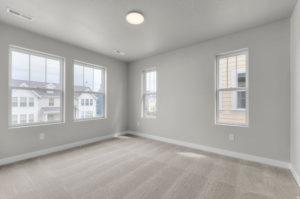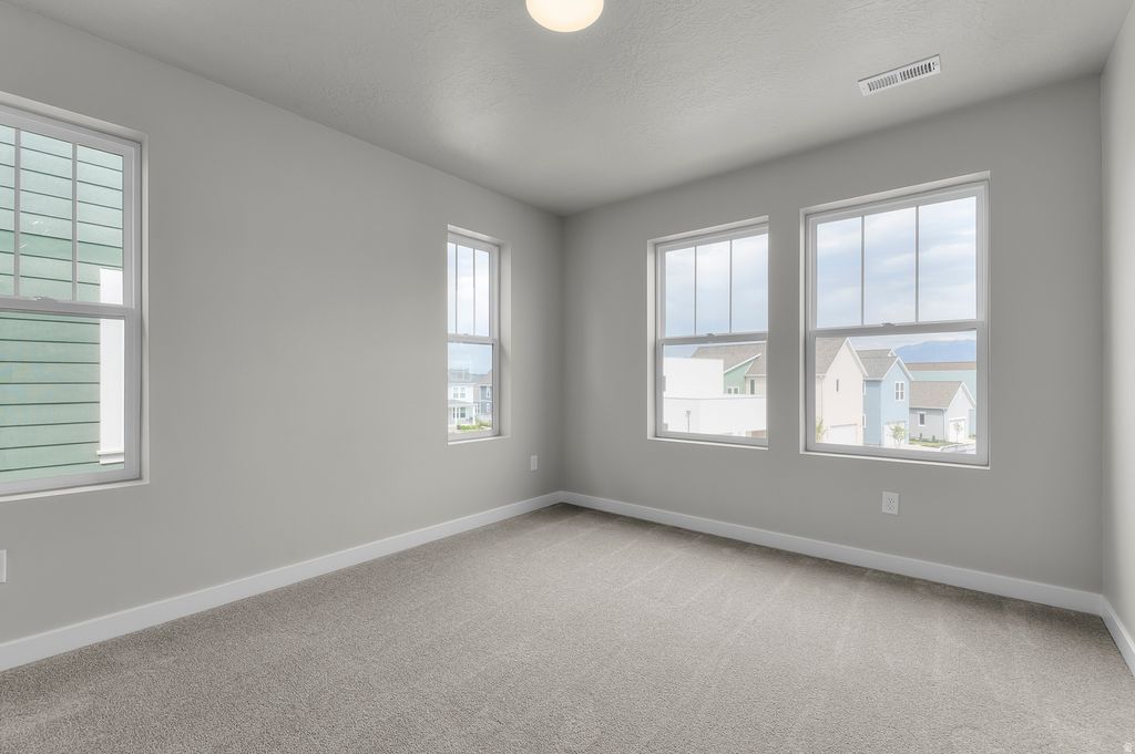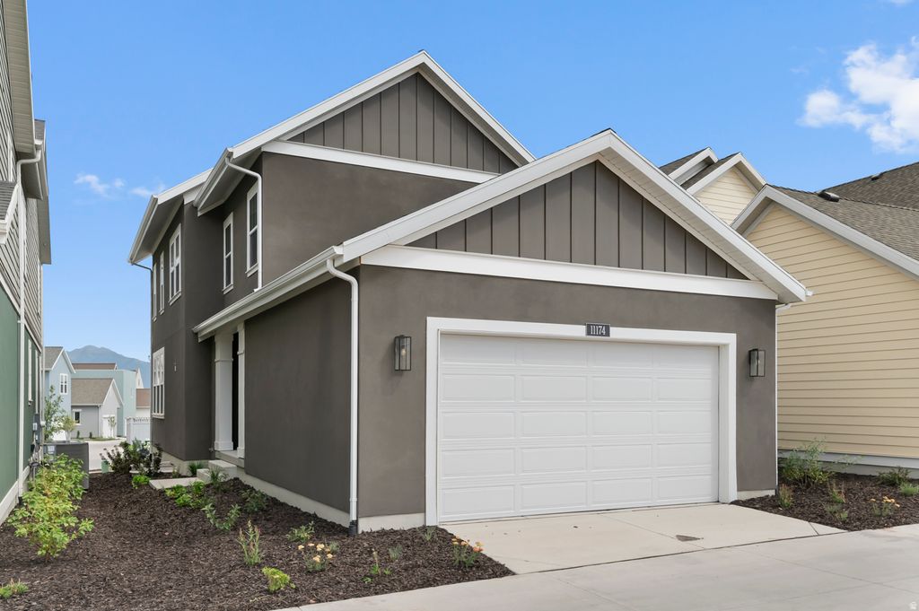 This stylish Colfax Craftsman is located in a great Daybreak community and features gray maple cabinets, quartz countertops, tile kitchen backsplash, and stainless steel gas appliances, creating a stylish and functional kitchen. The interior boasts laminate hardwood, tile, and carpet flooring, two-tone paint, and craftsman base and casing for timeless character. Enjoy added comfort with can lighting, Christmas light outlets, and energy-efficient options, as well as a tankless water heater. The owner's bathroom includes cultured marble shower surrounds and satin and brushed nickel hardware. A wood railing at the stairway adds warmth and charm, completing this thoughtfully designed home. Comes fully landscaped for an easy turn key experience!