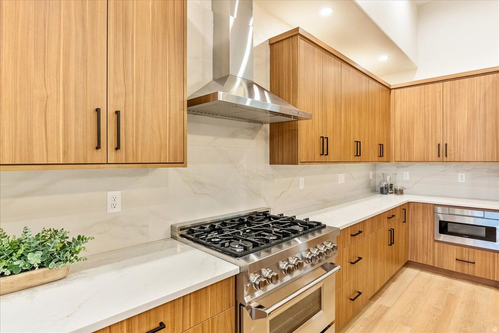 Just re-listed! Now offering approximately 800 additional square feet in the beautifully finished basement - including a fourth bedroom, fourth bathroom, and spacious second family room - this newly built contemporary home delivers even more flexibility and value. Nestled in the heart of Cottonwood Heights, this refined residence combines thoughtful design with breathtaking mountain views. Enjoy convenient freeway access and close proximity to top-rated schools, shopping, dining, and hospitals - offering everyday ease without sacrificing lifestyle. Designed for modern living, the open-concept main level seamlessly connects the living room, dining area, and chef's kitchen - creating an inviting space for entertaining and gathering. The kitchen is a true showpiece, featuring an expansive 8-foot bar, professional-grade 6-burner stove, and generous prep space for both hosting and daily living. The luxurious primary suite provides a serene retreat, complete with a standalone soaking tub, dual-head shower, and oversized walk-in closet. Exceptional versatility sets this home apart. The spacious basement includes a separate entrance and is already plumbed for a future ADU - offering flexibility for multi-generational living, guests, or potential rental income.