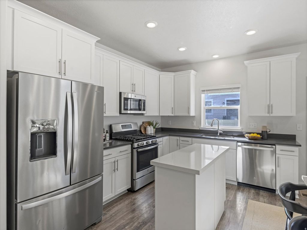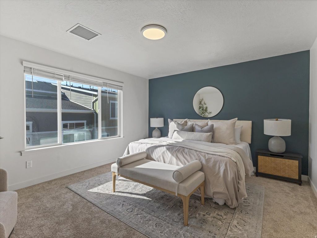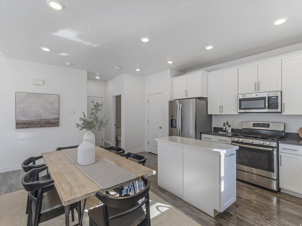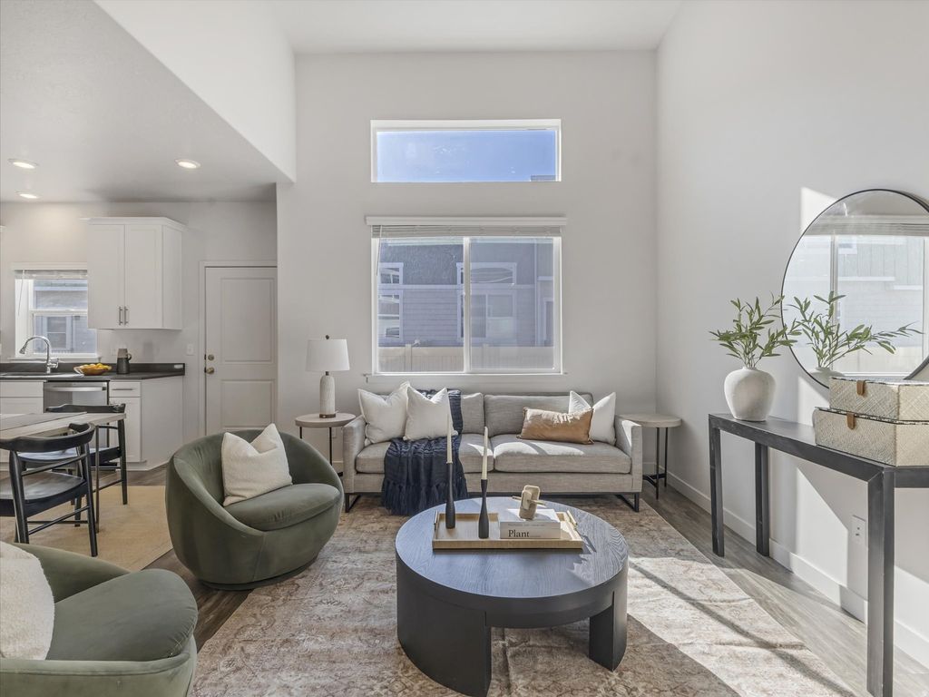 Welcome to this light and bright 4-bedroom townhome in Evans Ranch, in Eagle Mountain. Open-concept main level with abundant natural light, white cabinetry, stainless steel appliances, and a functional kitchen island. Flexible floor plan with spacious bedrooms and a finished lower level ideal for guests, home office, or additional living space. Attached garage and low-maintenance living with access to nearby parks, playgrounds, and open space. Convenient location close to shopping, dining, and outdoor recreation. This is an excellent opportunity for first-time buyers or investors alike!