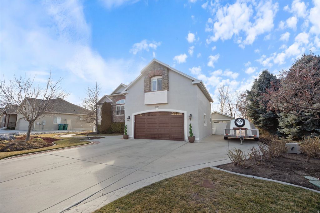 Breathtaking home, nestled in a quiet cul-de-sac and backing to a private beautiful park, this stunning home combines luxury, comfort, and functionality in one perfect package. Step inside and experience the grand open foyer with vaulted ceilings that immediately makes a statement. The chef's kitchen is designed to impress, featuring granite countertops, elegant cabinetry, and an abundance of workspace-perfect for both everyday living and entertaining. Enjoy indoor-outdoor living with a walkout deck just off the main level. The oversized owner's suite offers a peaceful retreat with enough space for a private office or sitting area. Large bedrooms throughout the home provide comfort and flexibility for family or guests. Downstairs, the finished basement features two separate entrances, offering potential for multi-generational living, rental income, or a private guest suite. Thoughtfully upgraded throughout, this home includes raised coffered ceilings, hardwood floors, upgraded plantation shutters on windows, and so much more. Outside, an extra storage shed provides space for a small car, workshop, or all your outdoor toys. Located near parks, trails, schools, and shopping, this Highland home is a rare find that beautifully balances privacy, space, and style. Square footage figures are provided as a courtesy they are estimates only. Buyer is advised to obtain an independent measurement. Newer water heater, furnace and AC unit. Exterior paint and some windows updated in 2025.