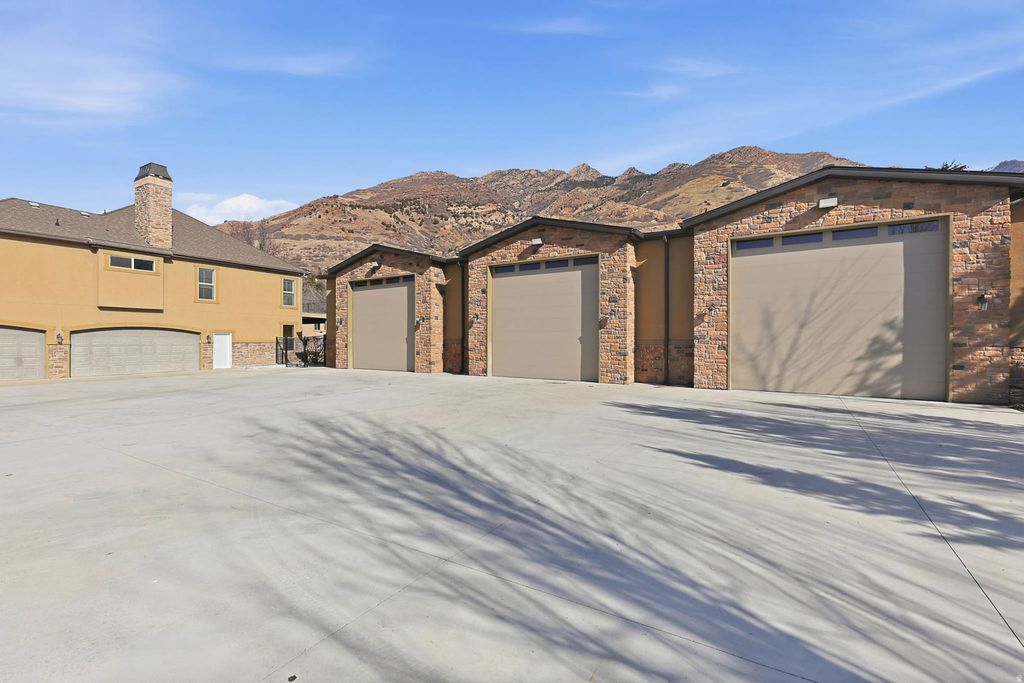 This gorgeous, traditional 2-Story home with Amazing 9000 sq ft Garage on an 11/2 acres in Holladay! This amazing floor plan also offers 7 bedrooms, 5 baths, 3 jacuzzi tubs. The large kitchen opens into the great room which walks out into a covered patio & large pool area featuring Mountain View's. This & so much more makes entertaining a breeze. Primary en-suite is located on the second floor. This relaxing, private sanctuary comes with a balcony and fireplace. Recently built Detached garage features 16 foot doors and 20 ft ceilings 9000 square feet. Words are not enough, check out the photos.