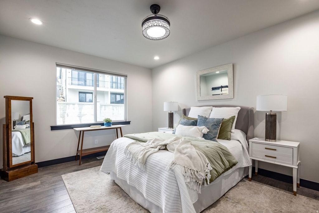 This thoughtfully designed, new-construction rambler is ideally located in a neighborhood with mature trees and stately homes. Enjoy the proximity to Mick Riley Golf Course, County Ice Center, IHC Hospital, shopping, restaurants, freeway access, and many parks. Completed early in 2023, this home features a primary bedroom with en-suite on both levels, an approved rental (ADU) on the lower level with a separate entrance, energy-efficient appliances in the gourmet kitchens, solar panels with a battery backup, epoxy floors, and an electric car charger in the large three-car garage (50 AMP), HVAC split for the lower level and main level, as well as a radon mitigation system.