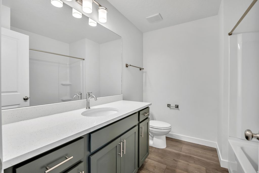 Enjoy your BRAND NEW Townhome by Woodside Homes! The Jefferson is an end unit, with a welcoming front porch, and tons of windows throughout for natural light. Main floor features 9' ceilings, upgraded cabinetry with white upper cabinets, and sage green lowers. White quartz countertops throughout, large pantry, waterproof wood laminate flooring on main and white wood railing for even more WOW. Upstairs has even more space with a huge primary suite. Dual sinks in the bathroom with an oversized shower. Spacious walk-in closets and upstairs laundry room make this home a dream. Call/Text to see this home and others from our Move-In-Ready Collection. Ask about our incredible preferred lender incentives to help make your dream of homeownership an affordable reality. #422 Jefferson.