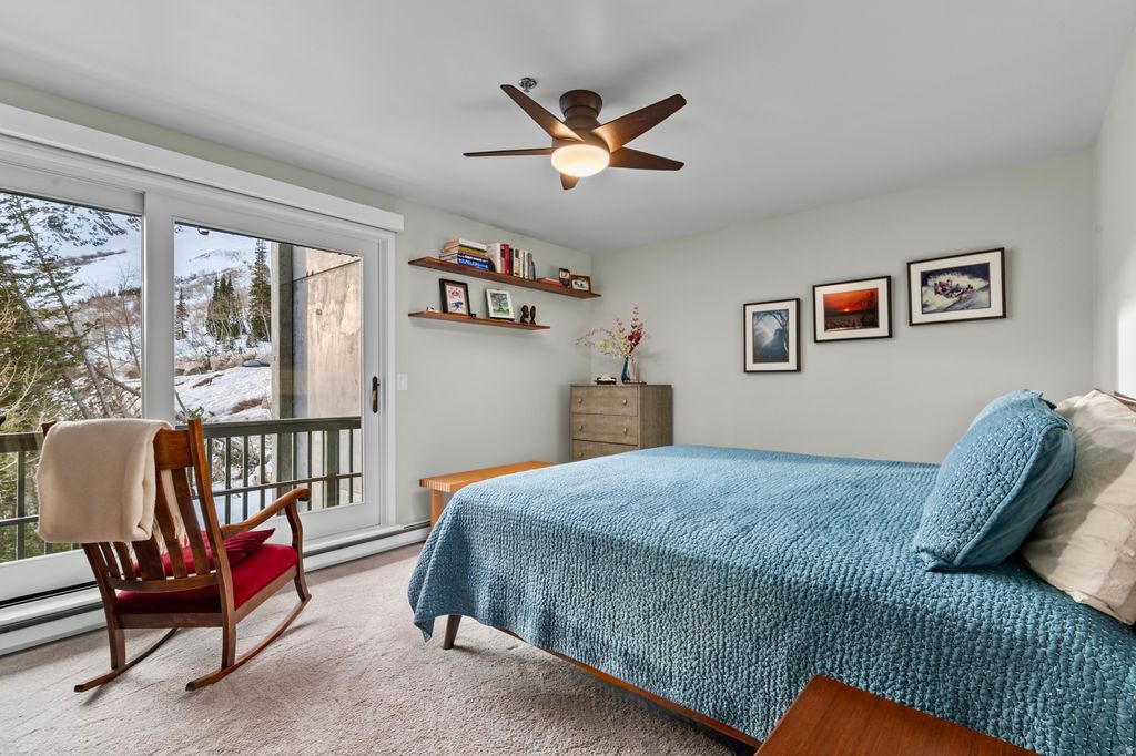 Welcome to a generational opportunity to own your mountain escape, located between TWO world class ski resorts - Alta and Snowbird. Part of the Hellgate Condominiums, this luxurious home awaits you after a day of skiing with arguably the best sunset view in the canyon. In the morning, sunrise from one of your two decks (or your bed!) brings morning light onto your commanding view of Mt Superior, while rugged Thunder Ridge glows in the distance. The home is in a newer building (2007), and has been extensively remodeled and updated with high-end finishes since 2019. Enjoy an open living space, with vaulted ceilings, and a bonus ~100 sq ft lofted flex area not included in the square footage, perfect for an office or extra sleeping space. Custom built-in black walnut cabinets, bar, and entertainment center provide warmth and luxury, while custom steel fabrication adds style. Two bedrooms and two full baths provide functionality, with in-unit laundry (included) as an added convenience. Enjoy peace and quiet, with no unit above, and only one shared wall. The lot to West is protected by a Friend's of Alta Land Trust preventing development and preserving your sunset views. An interior garage space is included. This home has been owner-occupied since 2019. No rental restrictions are currently in place. Don't forget to check out the 3D virtual tour by clicking the "tours" button.