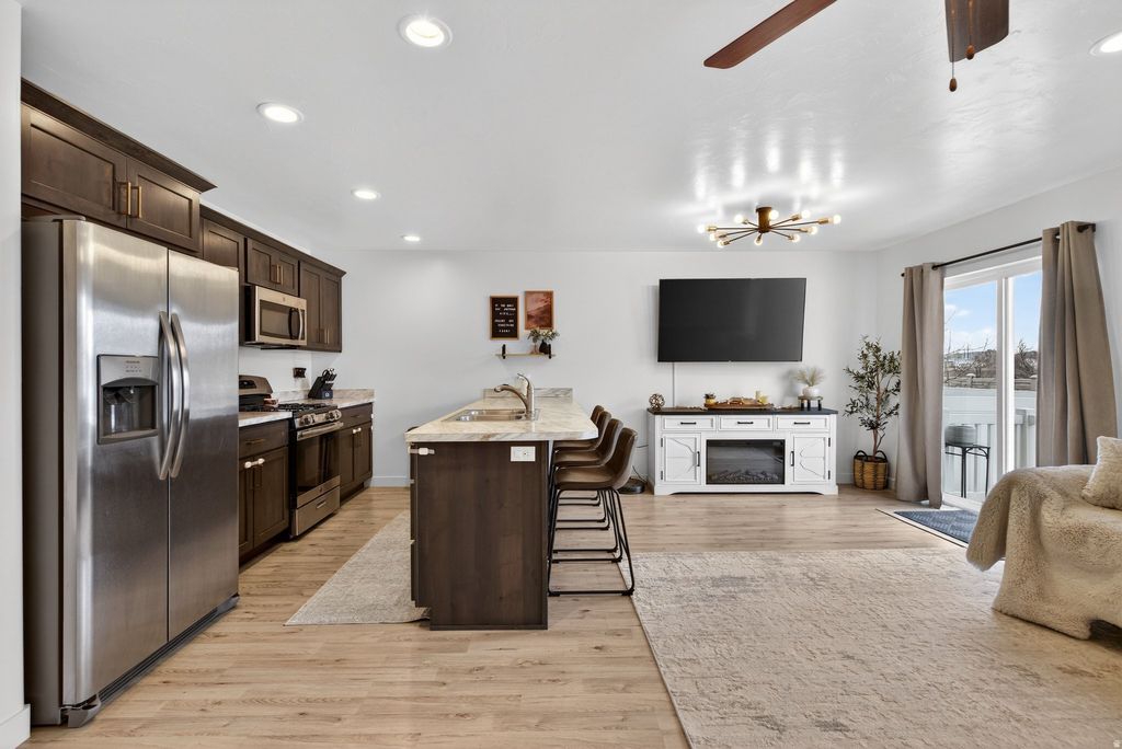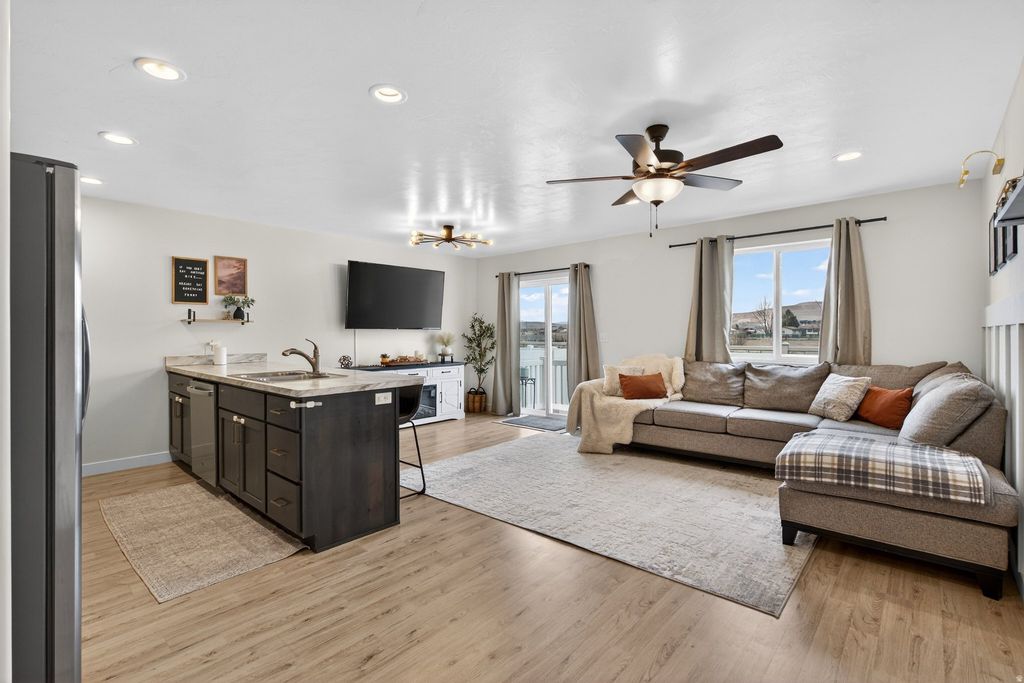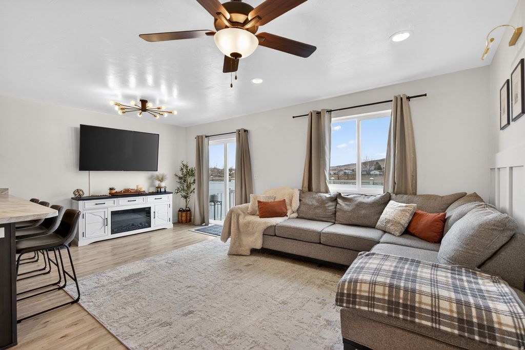 Experience the best of country living with modern comfort in this beautiful 3-bedroom, 2.5 bath townhome surrounded by breathtaking mountain views. This home offers that peaceful small-town charm - while still being just minutes from I-15, shopping, restaurants, and schools. It's the perfect balance of open skies, fresh air, and everyday convenience. Inside, you'll immediately notice the pride of ownership and thoughtful upgrades throughout. The open-concept layout features beautiful flooring, updated finishes, and a bright kitchen/living area for gathering. The spacious primary suite offers a quiet retreat at the end of the day with large walk-in closet and bathroom, while the additional bedrooms provide flexibility for family, guests, or a home office. The finished basement adds valuable living space either as a second family room, home gym, or play area. Also enjoy the peaceful neighborhood setting, with nearby parks, and pickle ball courts. If you've been looking for a move-in-ready home with views, space, and that true country feel - this is the one. Footage figures are provided as a courtesy estimate only and were obtained from county. Buyer is advised to obtain an independent measurement.
