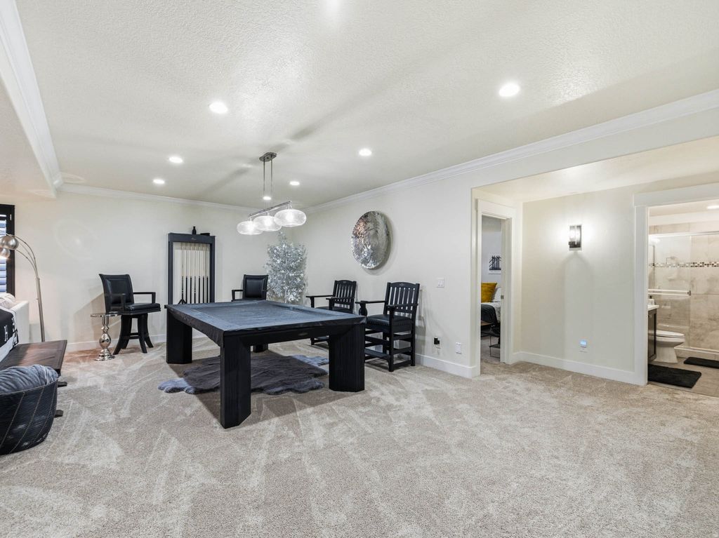 Luxury & Lifestyle in one of Draper's Premier Gated Neighborhoods! Discover model-home perfection in this stunning Draper residence. This home features a spacious main-floor living layout with a bright, open contemporary floorplan designed for effortless elegance. The fully finished basement is an entertainer's dream, complete with a wet bar, dedicated home theater, and two additional bedrooms. Enjoy a mostly maintenance-free lifestyle where the HOA includes a beautiful swimming pool. Located just steps from South Mountain Golf Club, you're also minutes from world-class hiking and mountain biking trails. With easy I-15 access, you are within 30 minutes of SLC International Airport and Utah's legendary ski resorts!