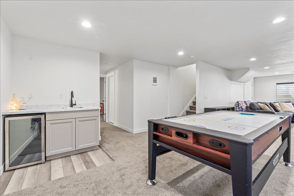 Beautifully upgraded home featuring 9' ceilings, two-tone paint, and new LVP flooring throughout. Granite countertops and vinyl cabinetry elevate the kitchen and baths. Fully finished basement (2022) with wet bar and electric fireplace adds great entertaining space. Flexible layout offers 4 bedrooms plus large loft (could be converted to 5th bedroom). Smart thermostat, smart garage door, overhead garage storage, and water softener included. Outdoor features include RV pad, gas fire pit, permanent exterior lighting, Eve smart lights, shed, dog run, and space currently used as pool/deck with pergola. Move-in ready with modern upgrades inside and out! Measurements given as courtesy, buyer to verify all.