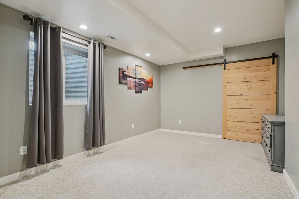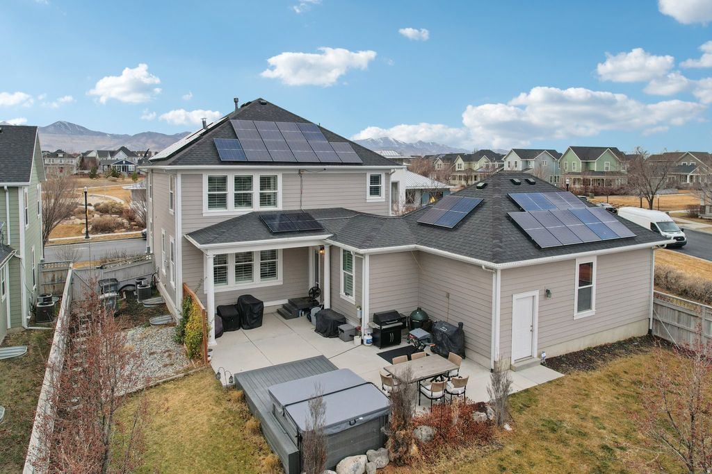 GRAND OPENING | OPEN HOUSE | FEBRUARY 14 | 1:00 PM- 3:00 PM. Luxury meets lifestyle in this stunning, fully upgraded Daybreak home just steps from the highly sought-after Brookside Park & Pool. Situated on a spacious, low-maintenance lot, this home is designed for both effortless living and elevated entertaining. The gourmet kitchen features a large island, hard-surface countertops, designer backsplash, and an open-concept layout that flows seamlessly into the dining and living areas. Enjoy outdoor living on the expansive patio and deck, perfect for hosting or unwinding in the hot tub under the stars. Retreat to the massive owner's suite with a spa-inspired bath, dual shower heads, marble tile, and walk-in closets. The fully finished basement offers two additional bedrooms and a private theater room with stadium seating, ideal for guests or multi-generational living. Major upgrades include tankless water heater and water softener (2023), solar panels, exterior repaint (2024), fireplace and kitchen updates (2024), plus new flooring and interior paint (2025). Oversized two-car garage with rare potential to add a 20x28 expansion. Move-in ready, highly upgraded, and located in one of Daybreak's most desirable areas, homes like this don't last. Schedule your private showing today.