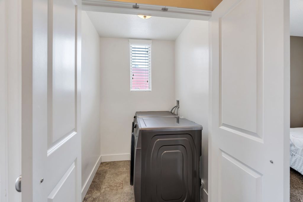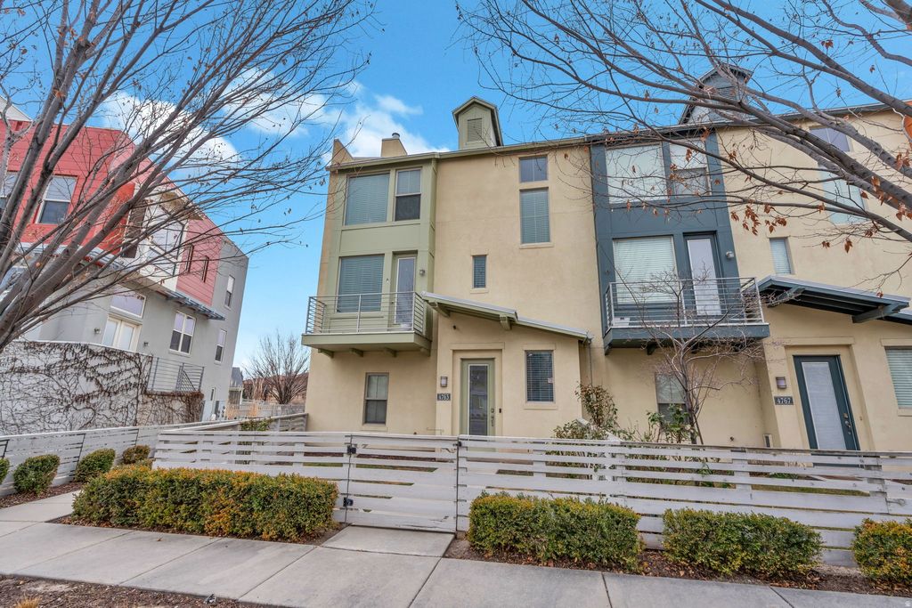 Welcome home to this stunning end-row townhome in the heart of Daybreak, where natural light and warm, inviting finishes create the perfect blend of comfort and style. The open-concept layout is flooded with sunshine thanks to the additional end-unit windows, making the space feel bright, airy, and welcoming. Ideally located less than one block from SoDa Row and Oquirrh Lake, you'll love having dining, shopping, entertainment, and waterfront trails just steps from your front door. The home also features a gated front lawn area, perfect for pets, kids, or relaxing outdoors. Inside, enjoy a crisp white kitchen with stainless steel appliances, plenty of counter space, and seamless flow into the living and dining areas, perfect for entertaining or everyday living. The attached garage offers direct access into the home for added convenience. Upstairs, retreat to a gorgeous primary suite complete with a private balcony, a large walk-in closet, and an ensuite bath featuring granite countertops and a double vanity. You'll also appreciate the dedicated laundry room, a rare upgrade over the typical laundry closet. Daybreak living means access to over 30 miles of walking trails, countless parks, and an unmatched community lifestyle. This location, layout, and light-filled design make this townhome an incredible opportunity you won't want to miss!