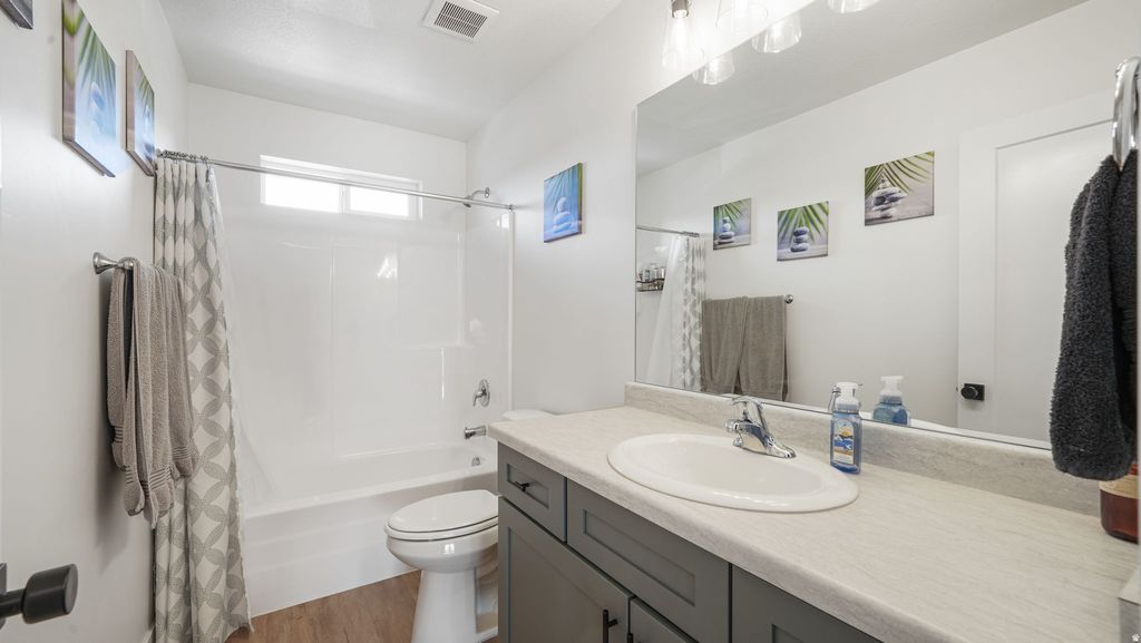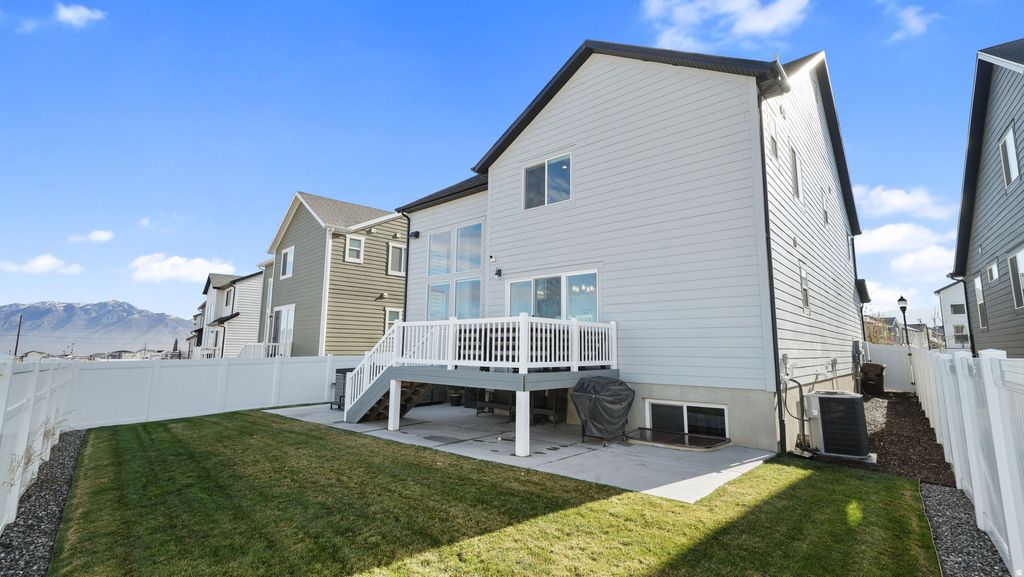 PRICE DRASTICALLY REDUCED + HOT TUB INCLUDED! Start the new year with an exceptional opportunity on a home that is truly better than new. Now offered at $709,900 (reduced from $734,900!), this stunning Herriman property delivers premium upgrades you won't find in new construction-and the almost-new hot tub on the back patio is INCLUDED! Step inside to a bright, open great room with extra-tall windows, a cozy fireplace, and a wide staircase with contemporary wrought-iron railing leading to the loft above. (The loft can easily be finished into an additional bedroom.) The gourmet kitchen features a farmhouse sink, beautiful finishes, and flows seamlessly to the extended backyard deck-perfect for entertaining year-round. The spacious unfinished basement already has HVAC completed, giving you a valuable head start on future expansion. Outside, every detail is complete: full landscaping, sprinkler system, vinyl fencing, and an extended cement patio spanning the length of the home. Enjoy permanent exterior accent lighting, an oversized garage with epoxied floors and finished walls, a whole-home filtered water system, and a 220 plug on the back patio for added flexibility. The Vivint Security System stays-simply enroll in their monthly service and enjoy peace of mind. With pristine condition, high-end upgrades, included hot tub, and a dramatic price reduction, this Peyton floor plan is a rare find at an unbeatable value. Schedule your private tour today! Square footage figures are provided as a courtesy estimate only and were obtained from county records . Buyer is advised to obtain an independent measurement.