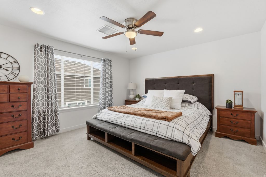 Welcome Home! This immaculate, end-unit townhome in Eagle Mountain is waiting for you! The main level features a gorgeous living room with soaring ceilings and so much natural light, a spacious kitchen with abundant cabinet space, a large center island that's perfect for gathering, and a convenient half bath for guests. UPSTAIRS, escape to your primary suite, complete with convenient dual closets, a large bathroom, and plenty of space to relax! Two additional bedrooms filled with natural light, and another bathroom complete the upstairs space. BASEMENT: The fully finished basement adds incredible versatility, offering a generous living room, an oversized full bathroom, and an additional bedroom featuring stylish barn doors-perfect for guests, a home office, or multi-generational living. OUTSIDE: Enjoy the fully fenced backyard with patio space ideal for relaxing or entertaining. Enjoy the many parks and the community pool just down the street, and schools, restaurants, and shopping close by! Don't miss this opportunity to own a move-in ready home in a thriving Eagle Mountain neighborhood-schedule your showing TODAY!